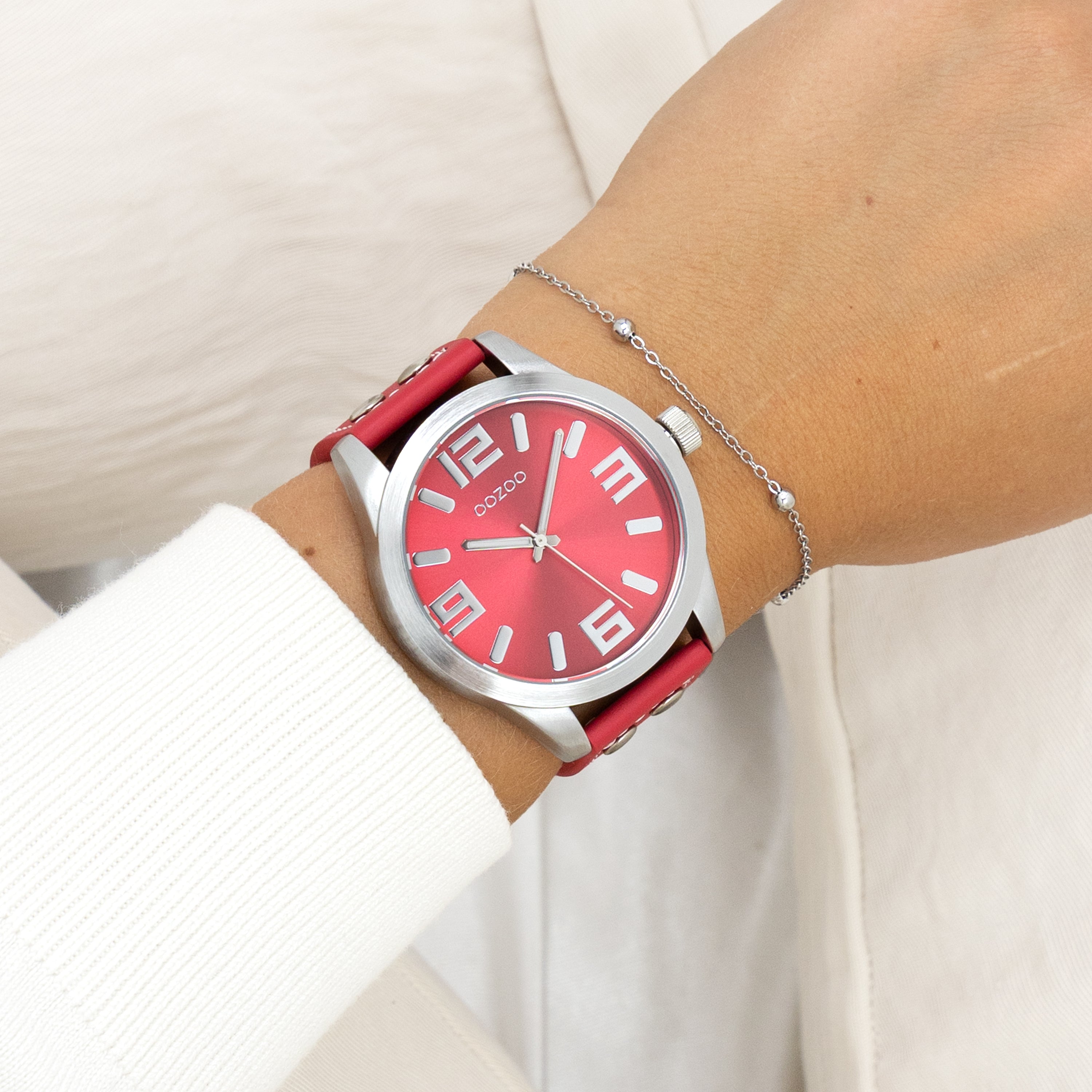 OOZOO Timepieces C11554 Lederarmaband rot 46 mm XXL