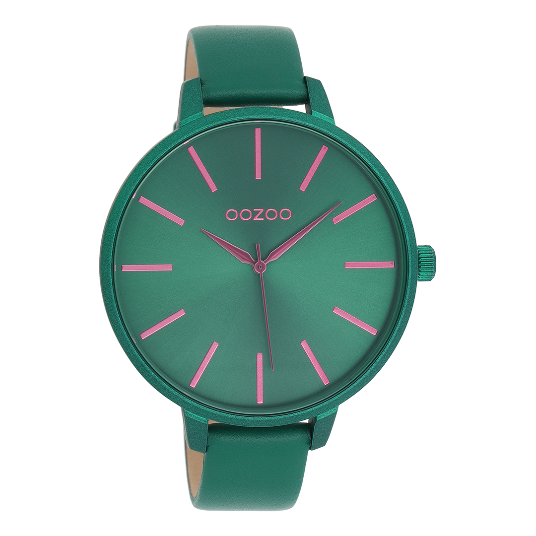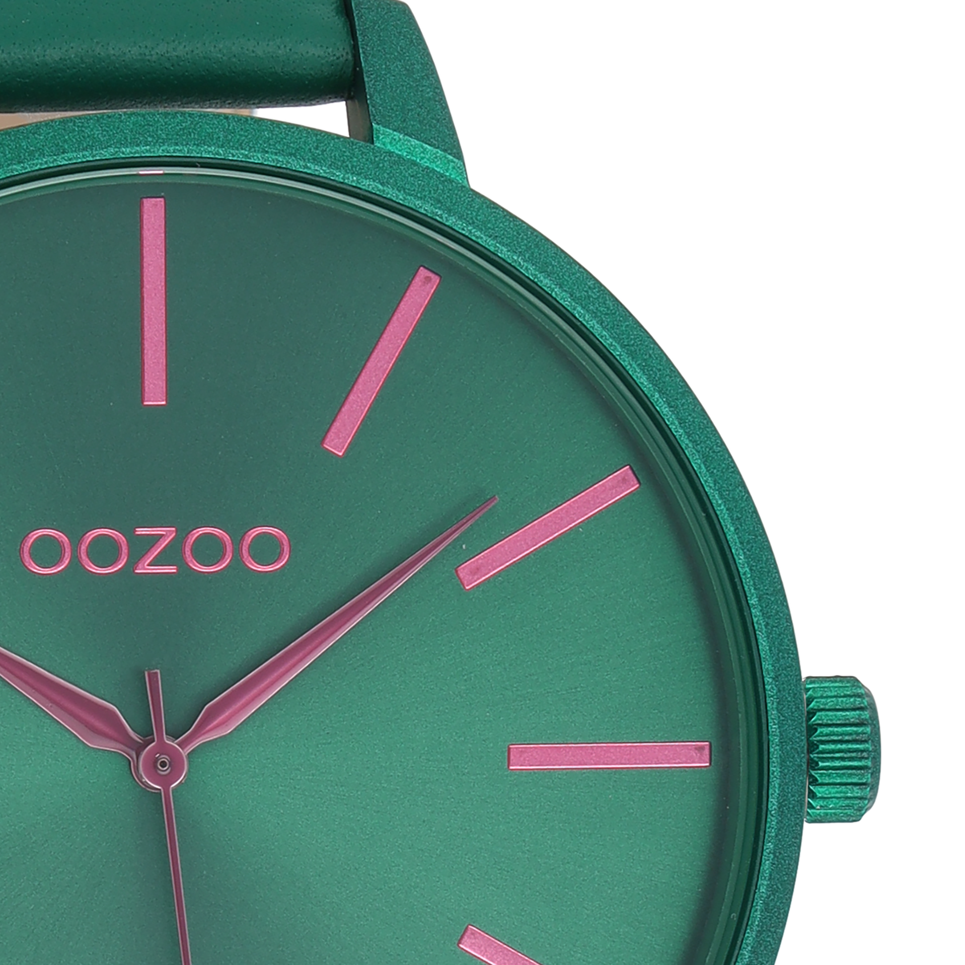 OOZOO Timepieces C11440 Damenuhr Leder-Armband - grün / rosa 48 mm