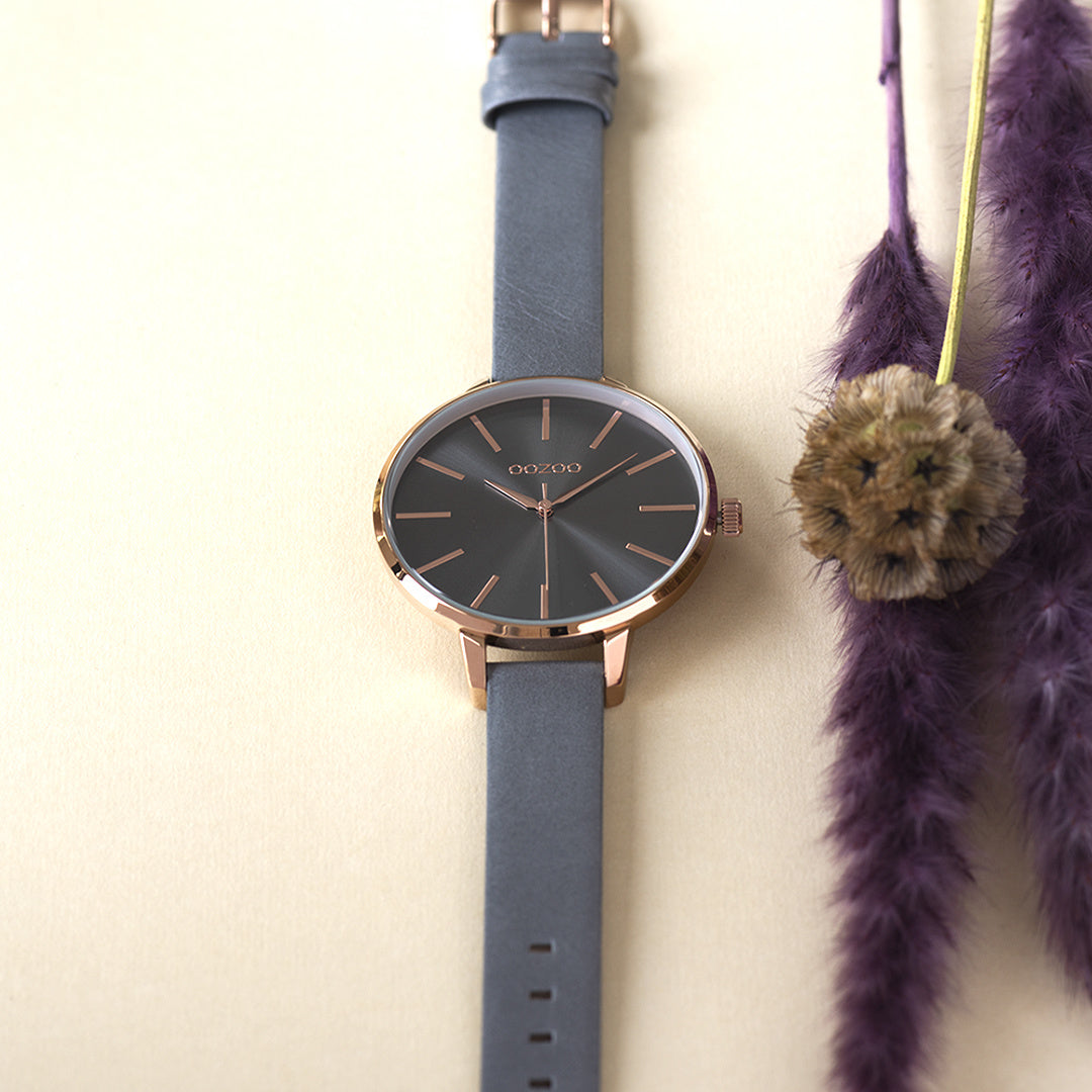OOZOO Timepieces - C10713 - Damen - Leder-Armband - Blaugrau/Roségold
