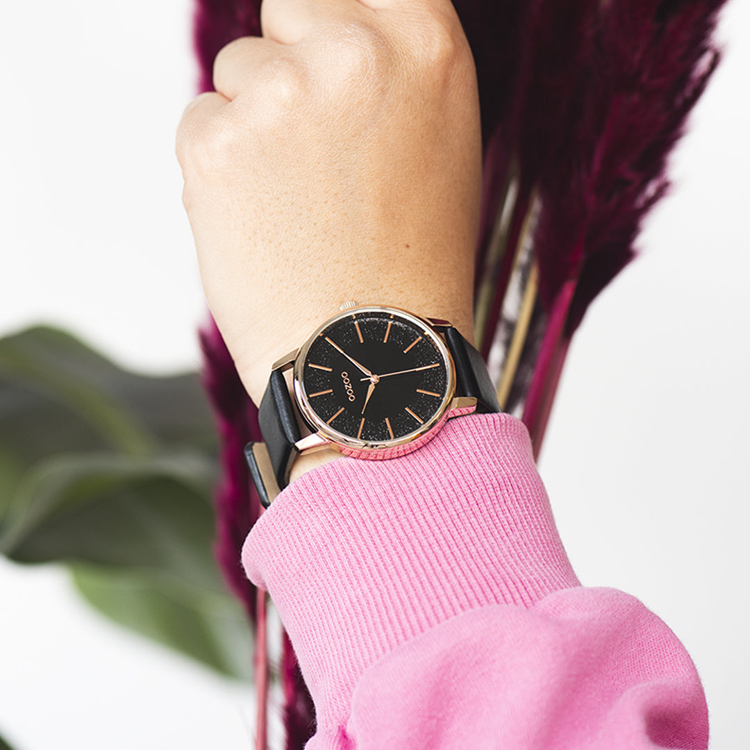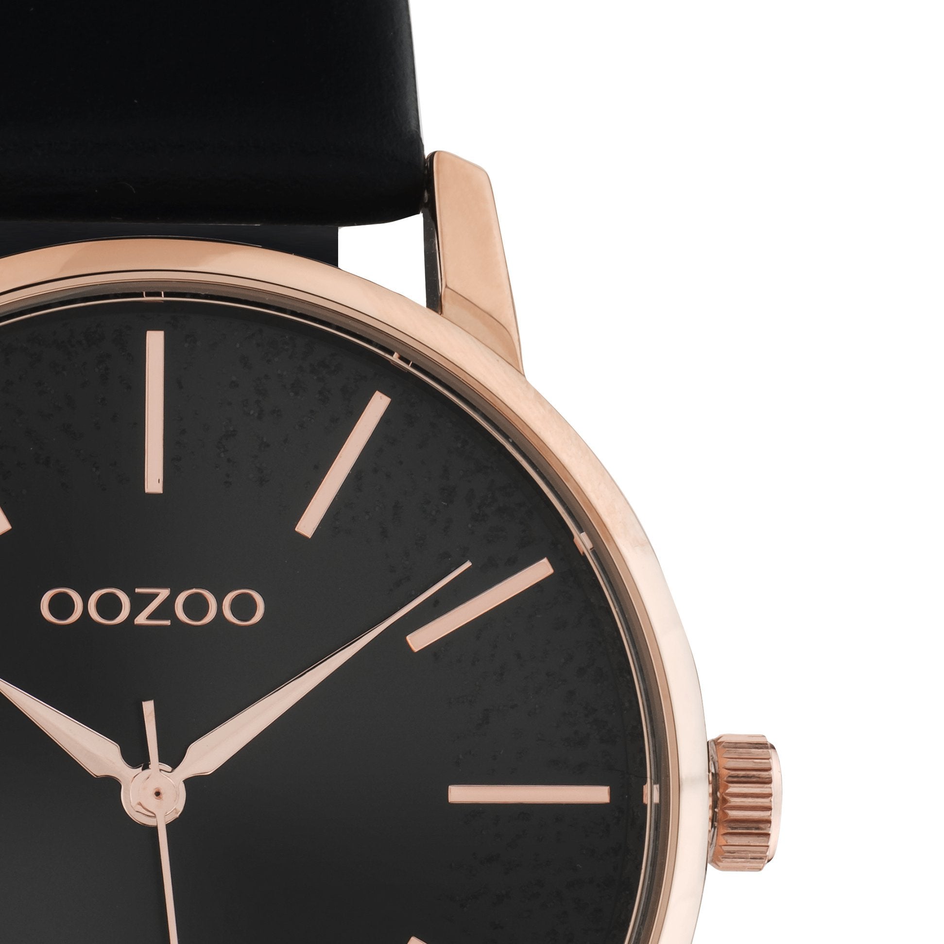 OOZOO Timepieces - C10719 - Damen - Leder-Armband - Schwarz/Roségold