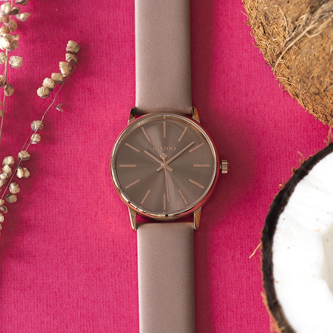 OOZOO Timepieces - C10721 - Damen - Leder-Armband - Pinkgrau/Roségold