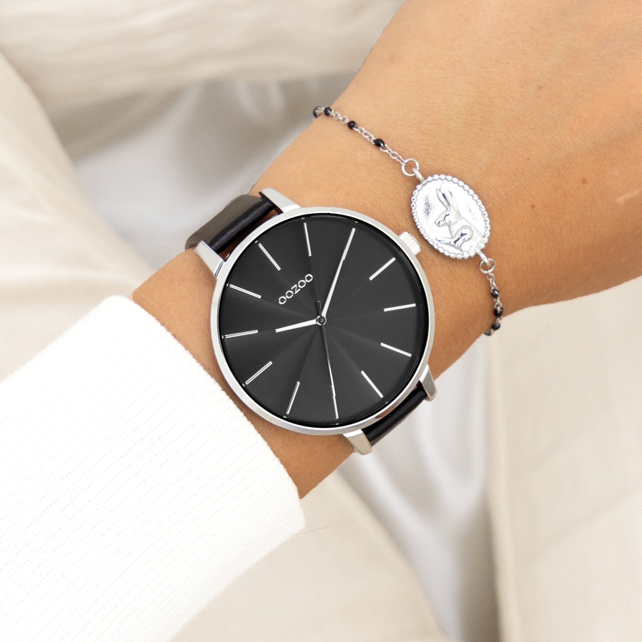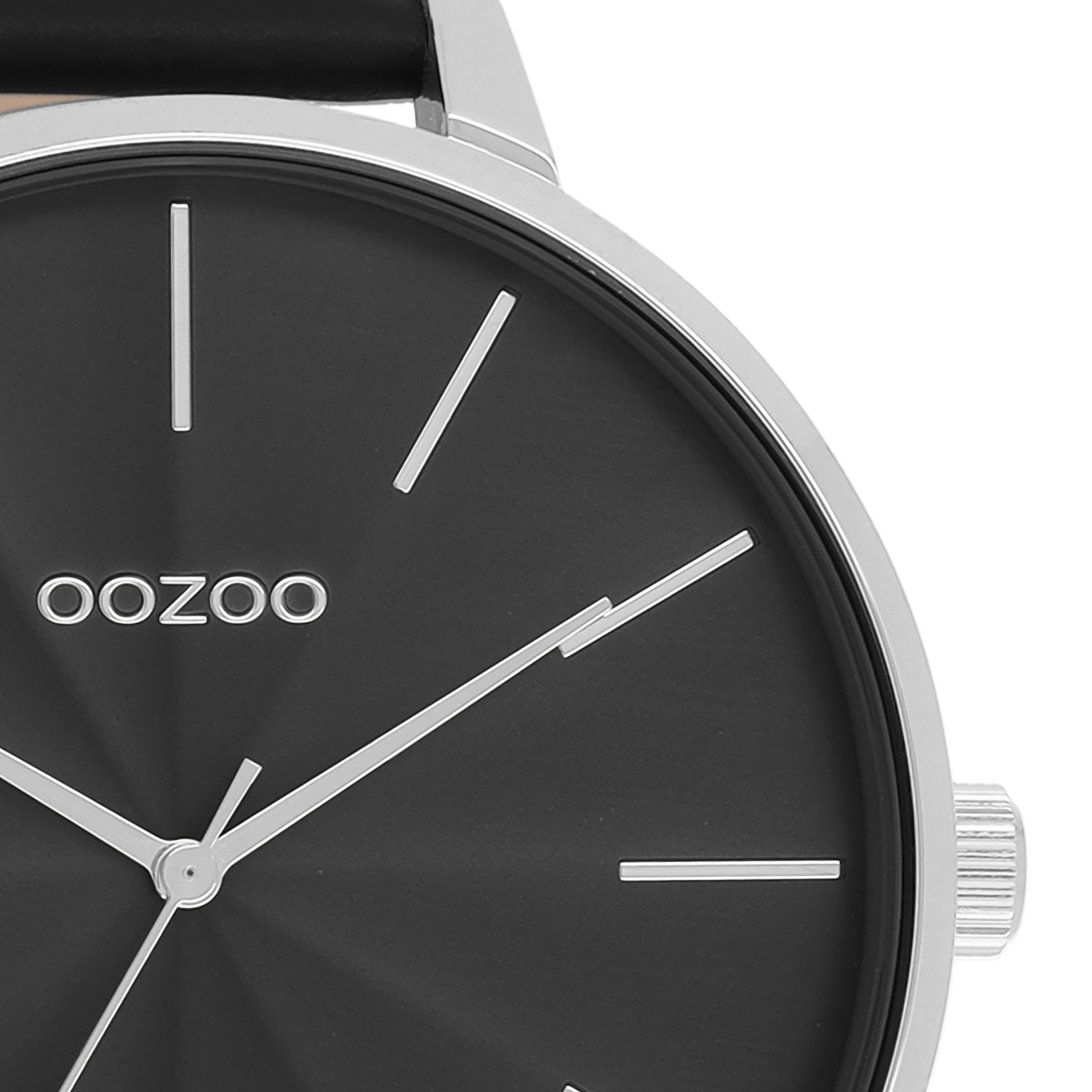 OOZOO Timepieces - C11258 - Damen - Leder-Armband - Schwarz/Silber 48 mm XL