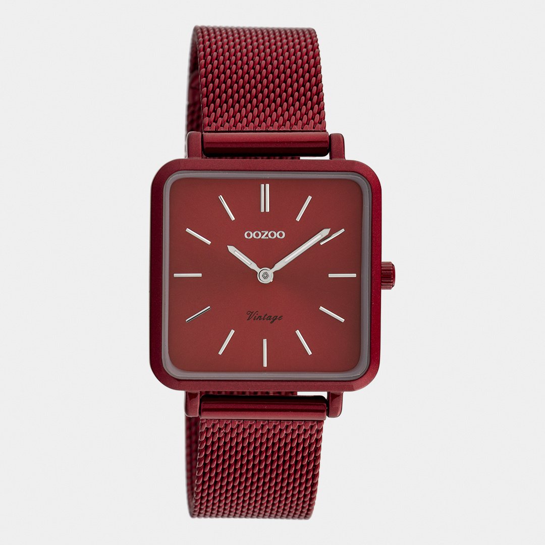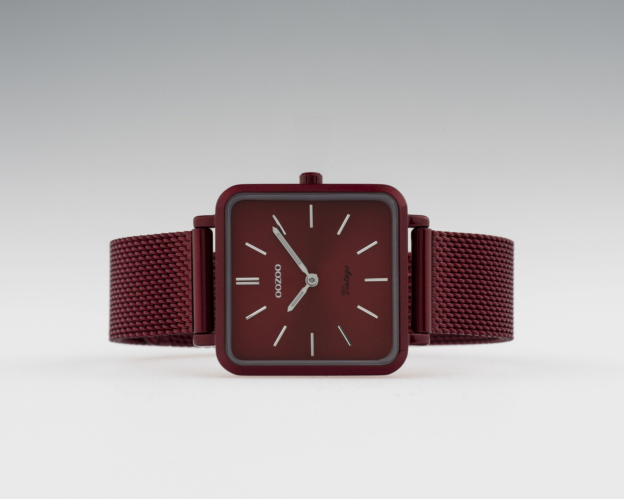 OOZOO Vintage - C20011 - Damen - Edelstahl-Mesh-Armband – Bordeauxrot