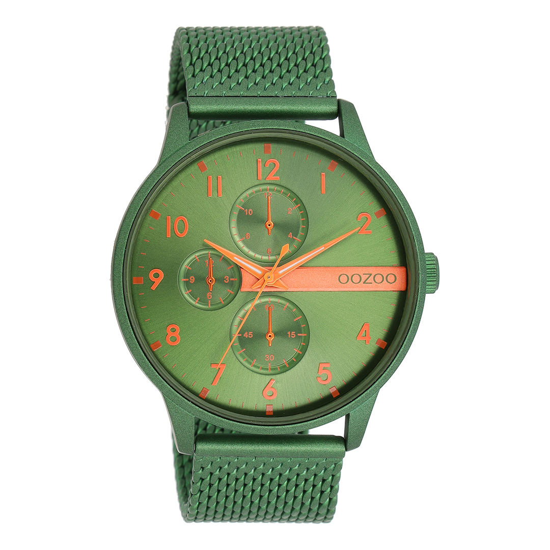 OOZOO Timepieces - C11303 - Herren - Edelstahl-Mesh-Armband - Grün/Orange