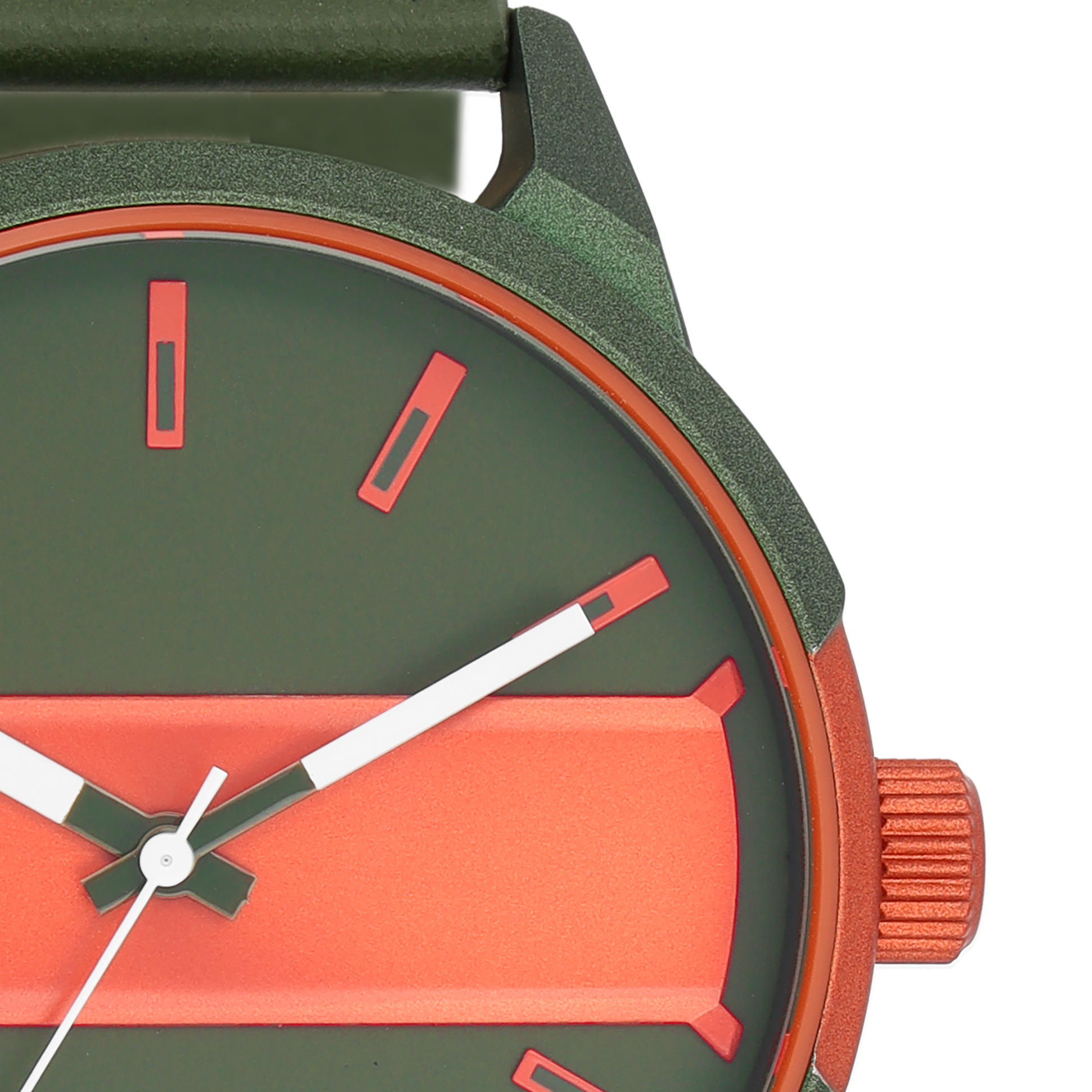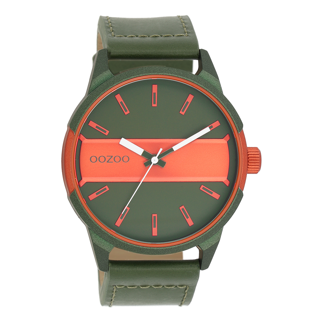 OOZOO Timepieces - C11318 - Herren - Leder-Armband - Grün/Orange
