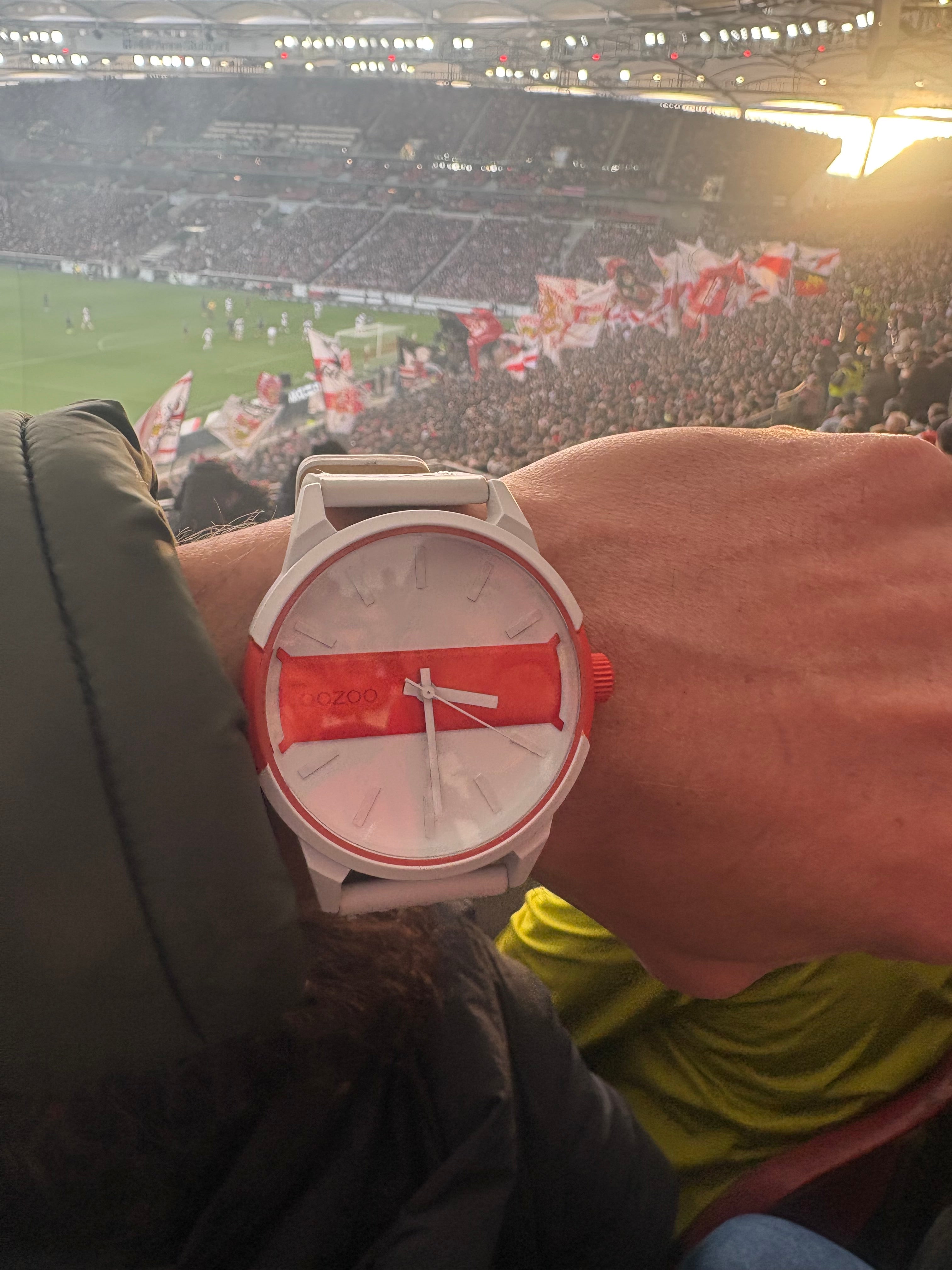 Markante Herrenuhr mit auffälliger Weiß/Rot-Farbkombination