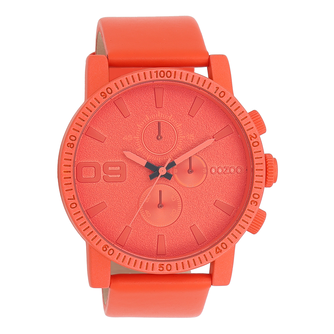 OOZOO Timepieces - C11219 - Unisex - Leder-Armband - Rot/Orange