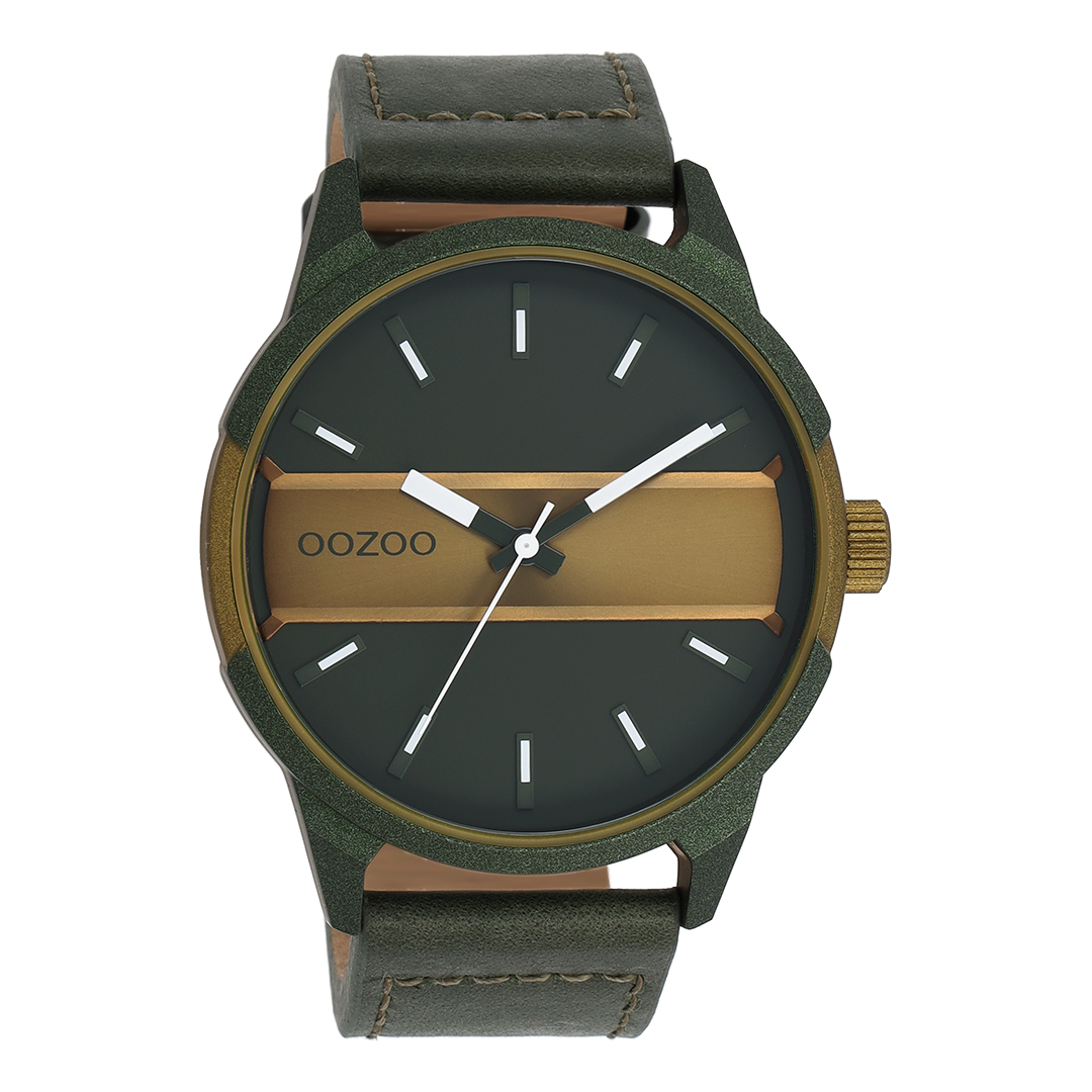 OOZOO Timepieces - C11233 - Herren - Leder-Armband - Grün/Olive