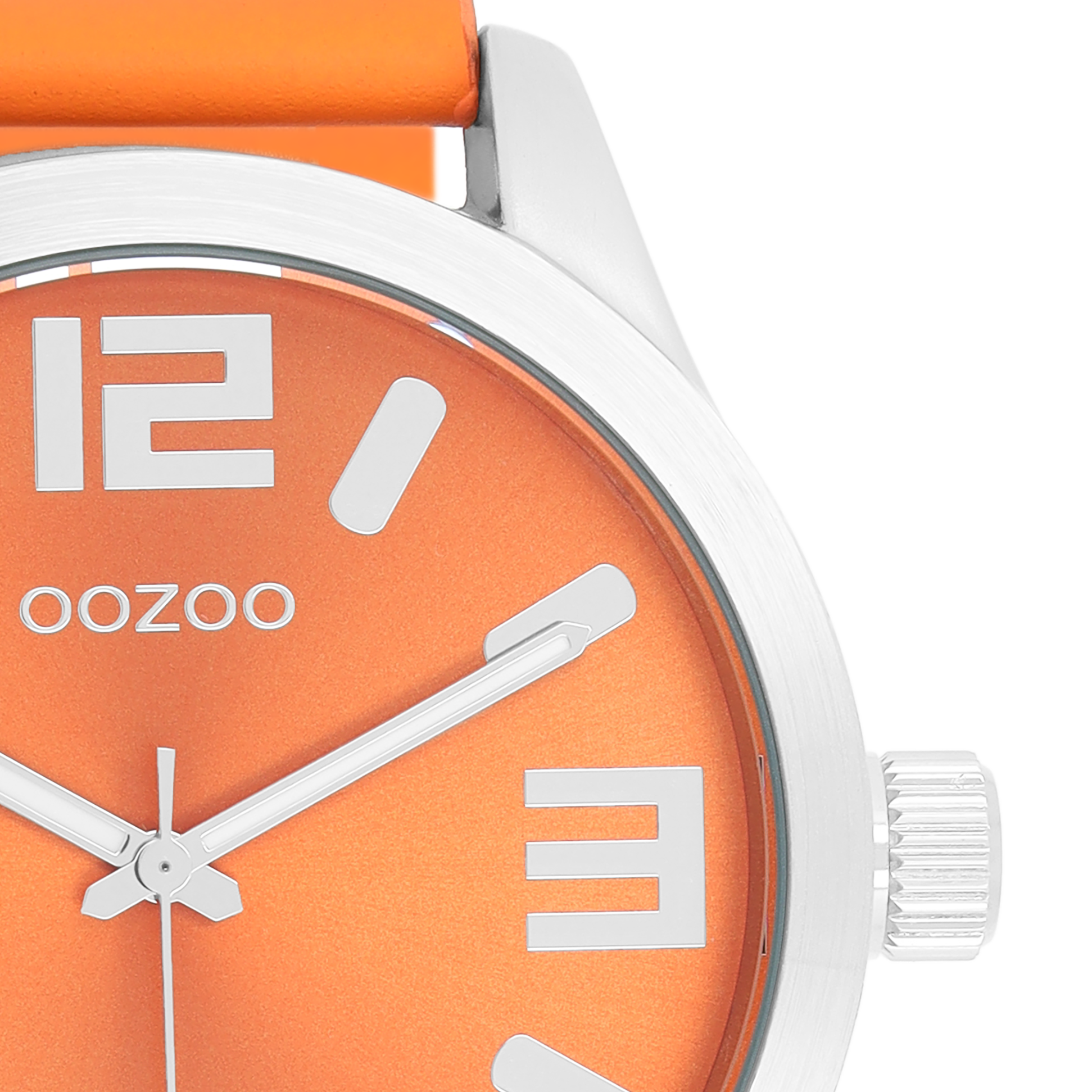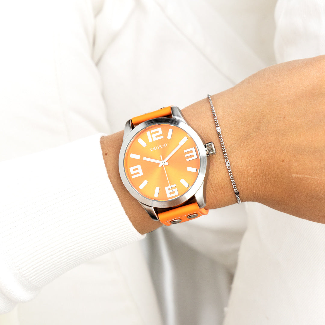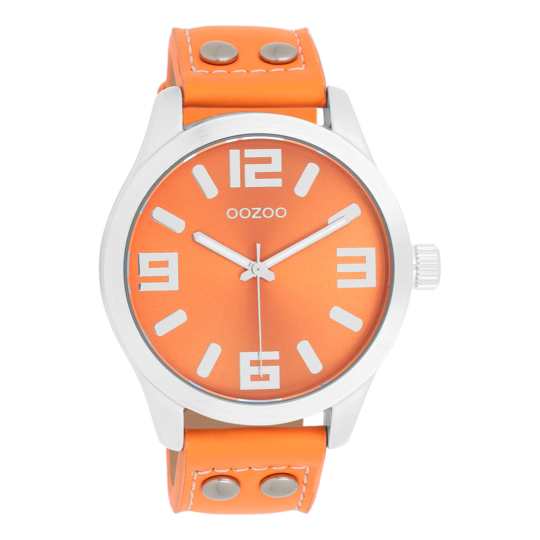 OOZOO Timepieces - C1072 - Damen - Leder-Armband - Neonorange/Silber XL