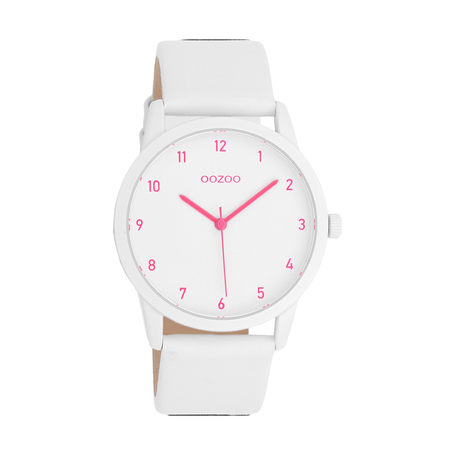 Heben Sie sich mit diesem schönen runden Damenmodell aus der trendigen OOZOO Timepieces-Kollektion ab. Die C11057 hat ein weißes Lederarmband und ein 38 mm großes weißes, mattes Uhrengehäuse. Mit dem weißen Sonnenschliff-Zifferblatt, den rosa Ziffern und den rosa Zeigern setzen Sie ein modisches Statement. Diese unverzichtbare Uhr für Ihre Garderobe hat ein Mineralglas und ein Metallgehäuse mit IP-Beschichtung.