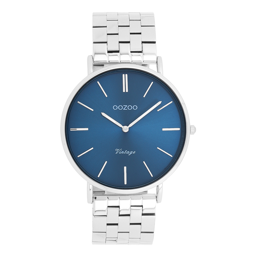Diese OOZOO Vintage Unisex-Armbanduhr kombiniert klassisches Design mit einem modernen Farbakzent. Das tiefblaue Zifferblatt verleiht der Uhr eine besondere Tiefe und Eleganz, während das silberne Edelstahlarmband für einen hochwertigen Look sorgt. Minimalistische Indizes und ein schlankes Gehäuse runden das Design stilvoll ab.