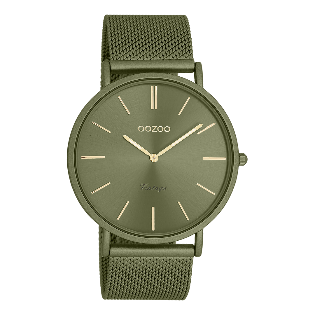 Die OOZOO Vintage C20443 ist perfekt für Männer, die Trendfarben lieben: Das angesagte Khaki kombiniert mit dem eleganten Mesh-Armband aus Edelstahl verleiht dieser Herrenuhr einen modernen Vintage-Look. Mit ihrem 44mm XL-Gehäuse ist sie ein selbstbewusstes Statement aus der OOZOO Vintage Trend Collection.