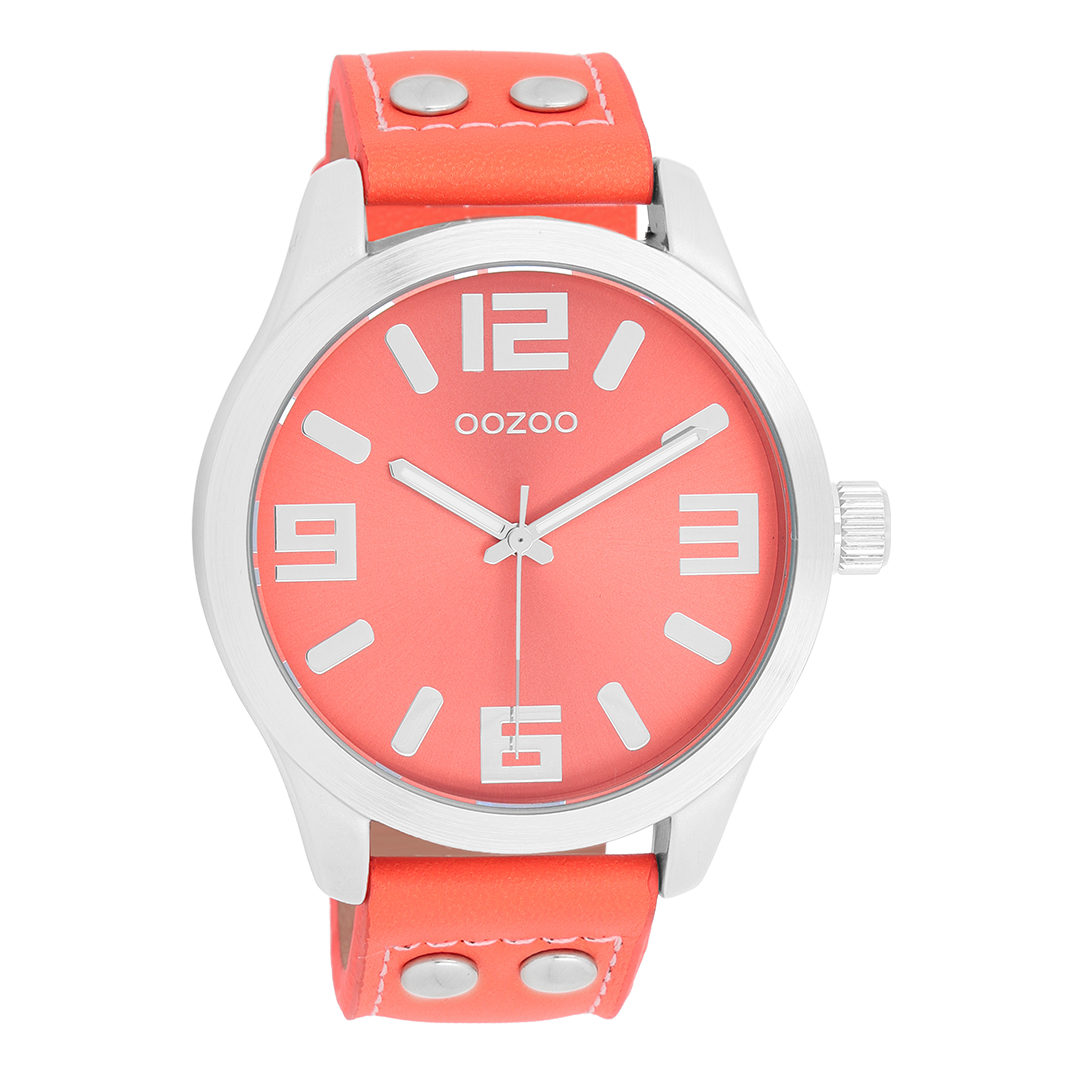 OOZOO Timepieces - C1073 - Damen - Leder-Armband - Korallenrot/Silber XL