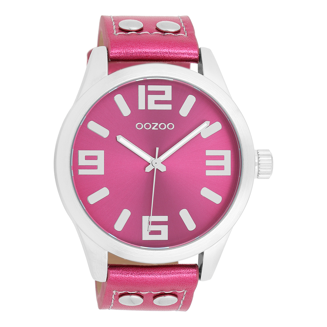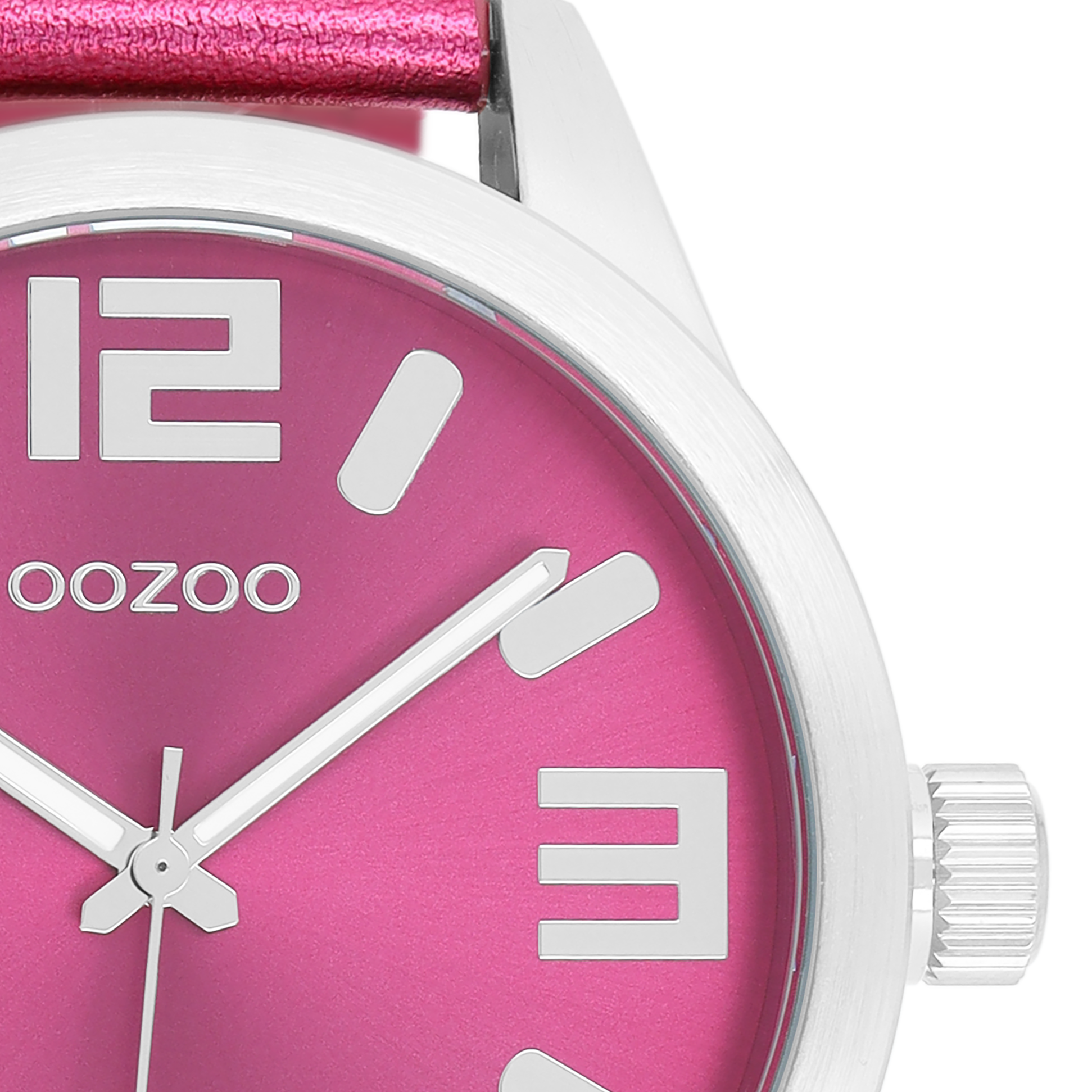 OOZOO Timepieces - C1078 - Damen - Leder-Armband - Pink/Metallic XL