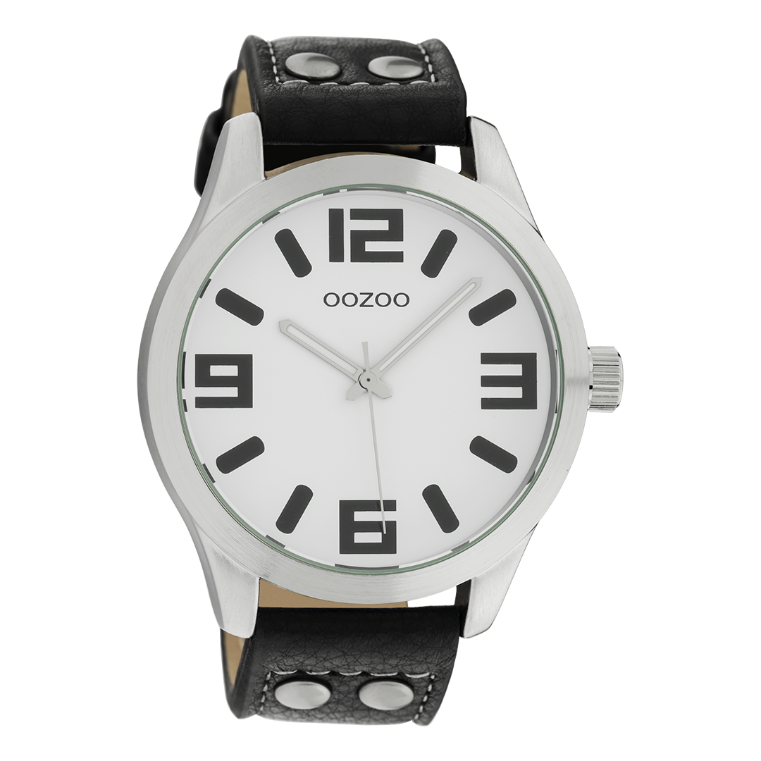 OOZOO Timepieces - C1053 - Herren - Leder-Armband - Schwarz/Weiß