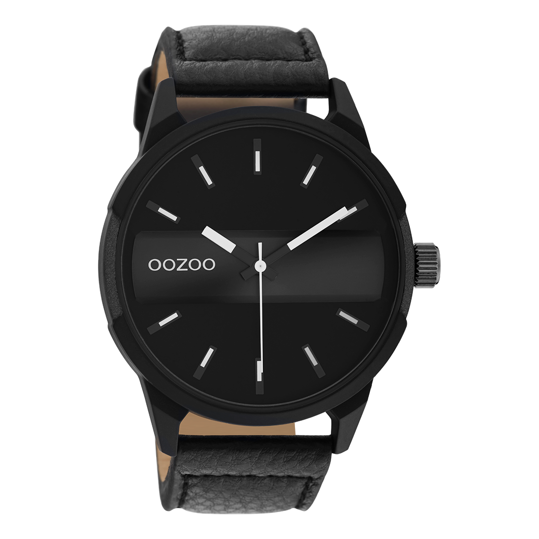 OOZOO Timepieces - C11004 - Herren - Leder-Armband - Schwarz/Dunkelgrau