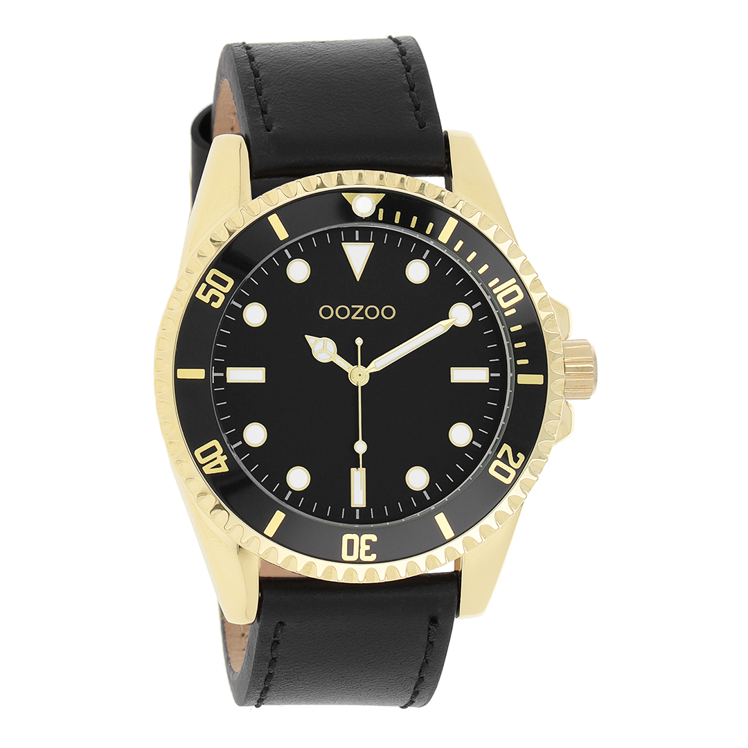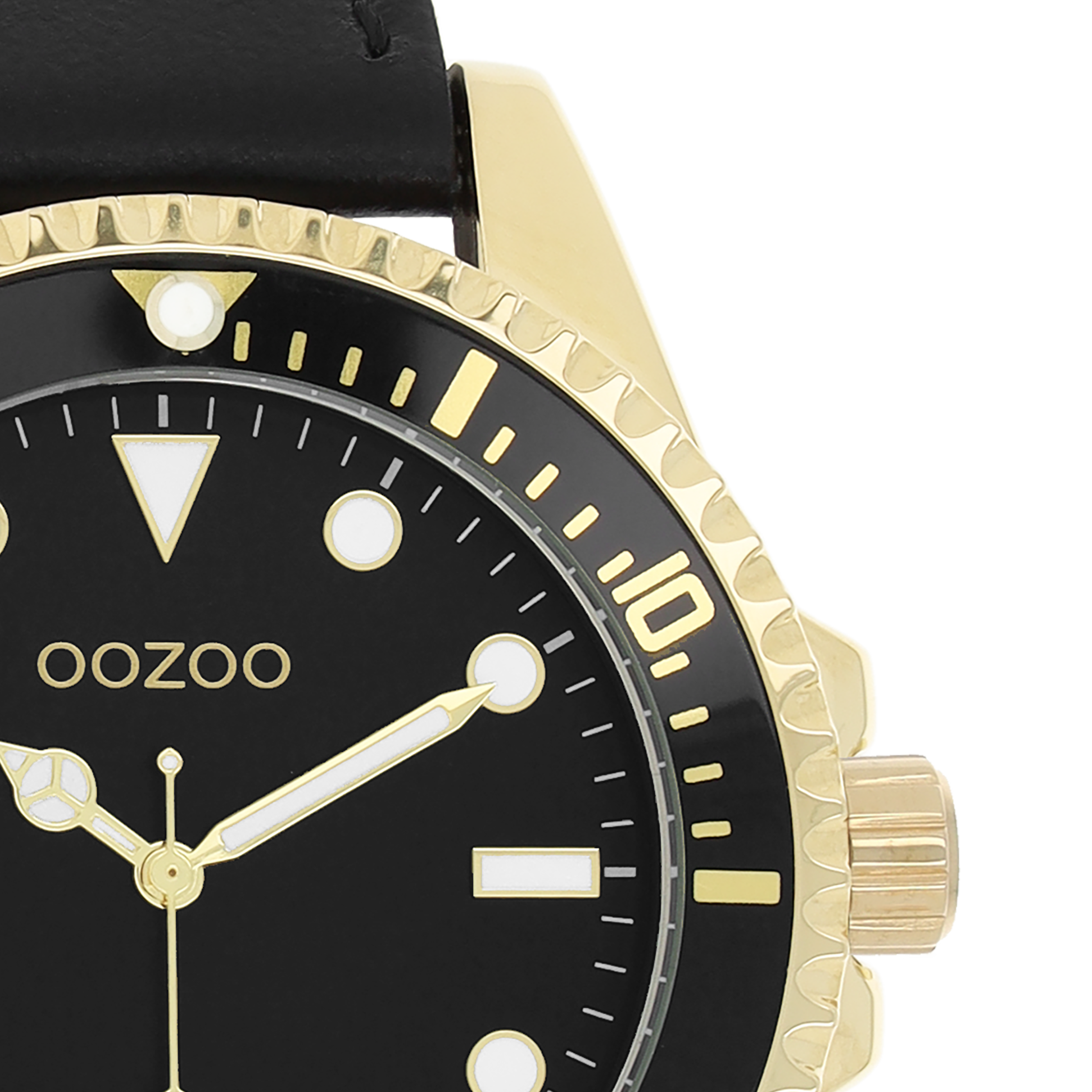 OOZOO Timepieces - C11115 - Herren - Leder-Armband - Schwarz/Gold