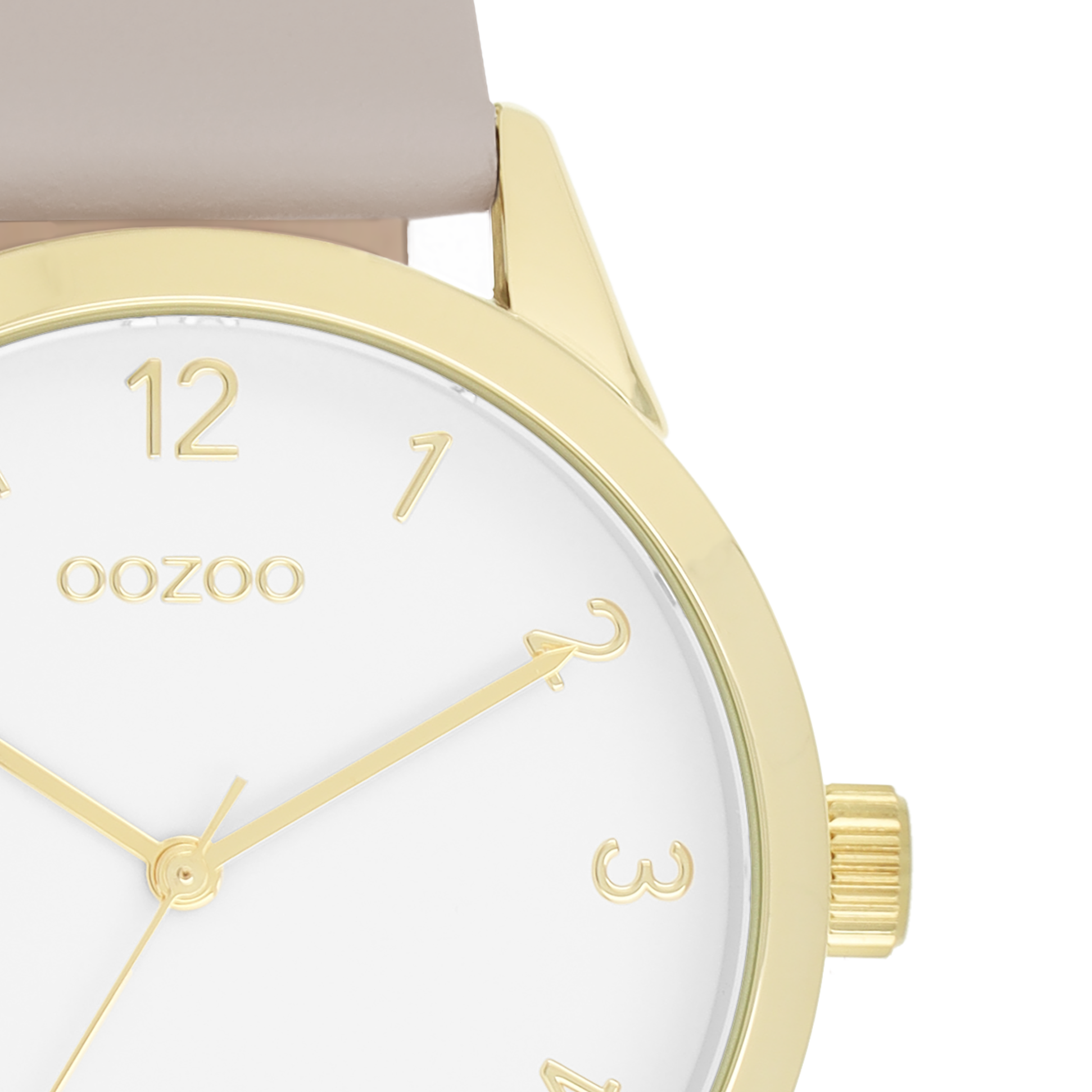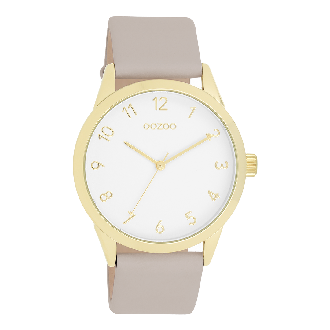 OOZOO Timepieces - C11327 - Damen - Leder-Armband - Taupe/Weiß/Gold