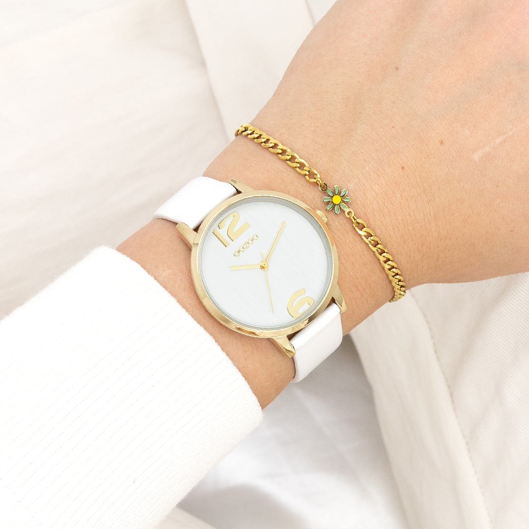OOZOO Timepieces - C11340 - Damen - Leder-Armband - Weiß/Gold