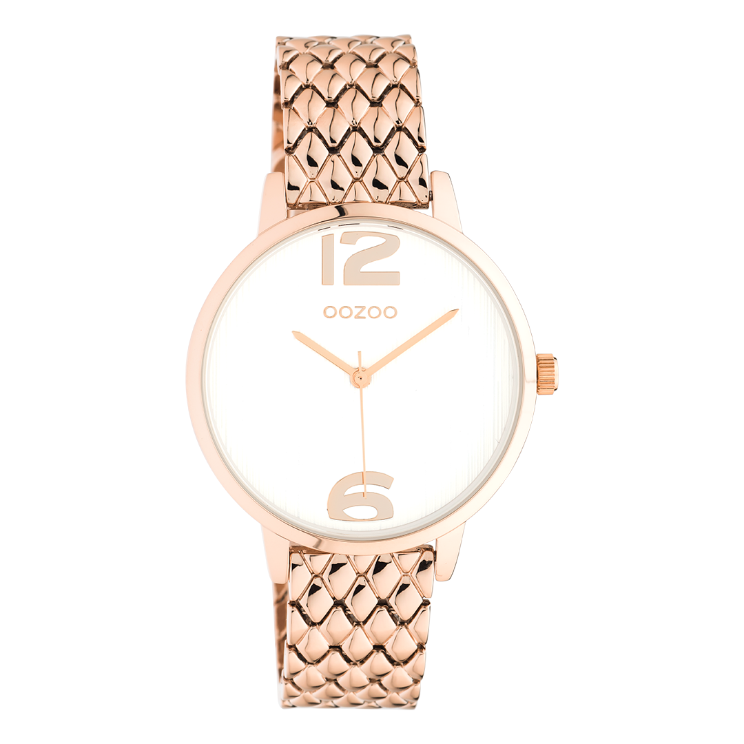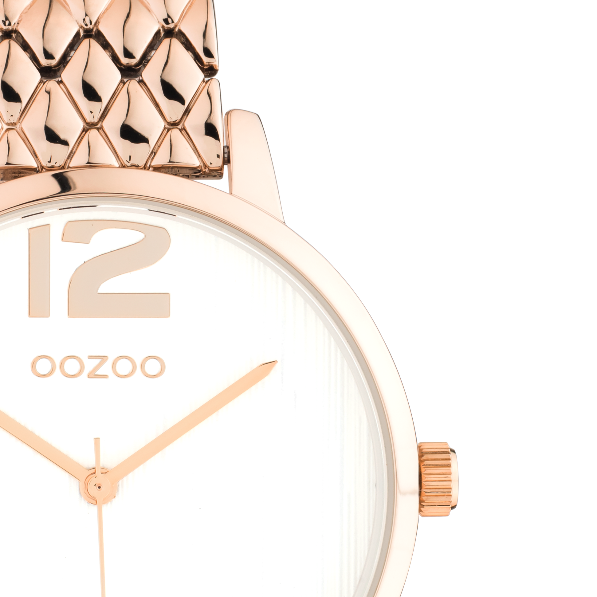OOZOO Timepieces - C10923 - Damen - Edelstahl-Glieder-Armband - Roségold/Weiß