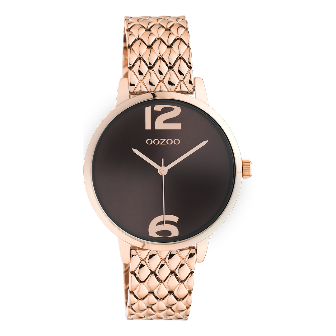 OOZOO Timepieces - C10924 - Damen - Edelstahl-Glieder-Armband - Roségold/Bordeaux