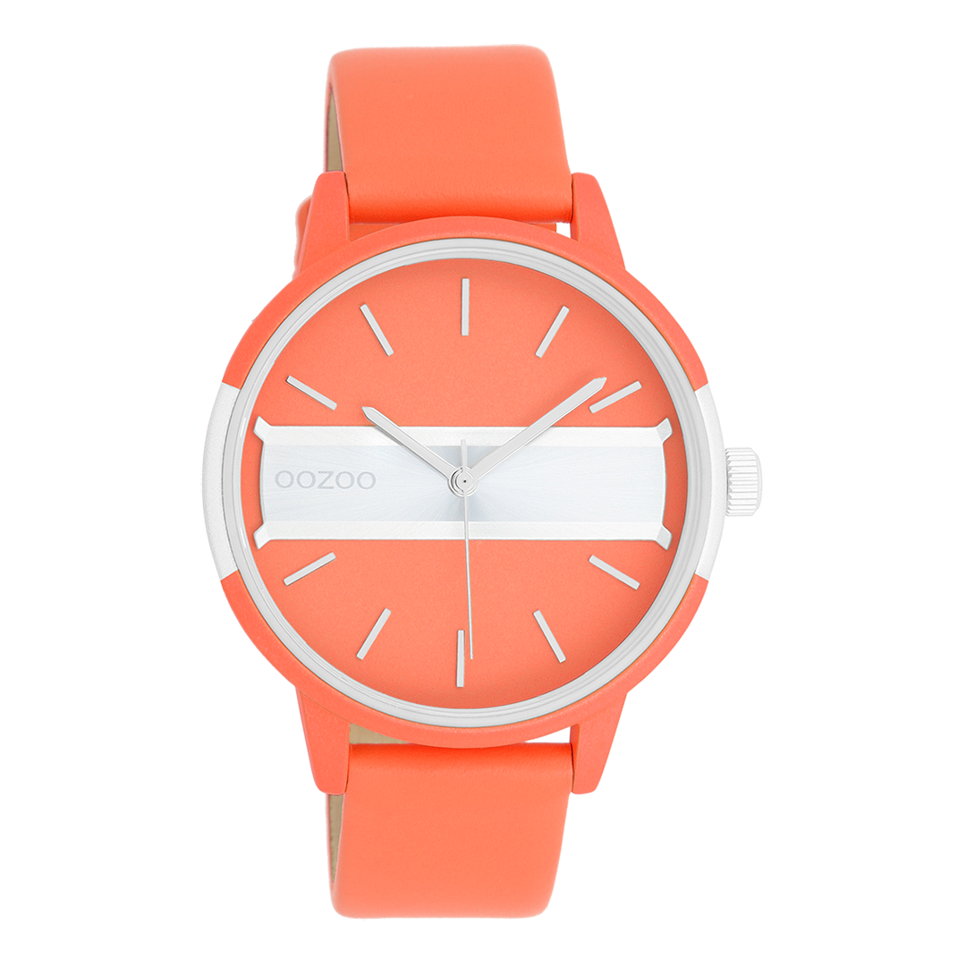 OOZOO Timepieces - C11190 - Damen - Leder-Armband - Neonrot/Silber