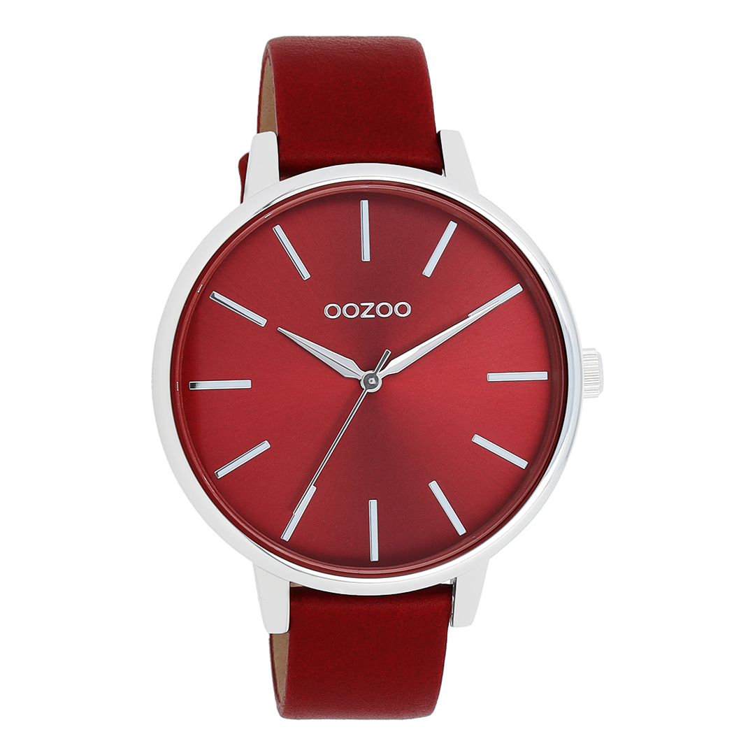 OOZOO Timepieces - C11299 - Damen - Leder-Armband - Rot/Silber