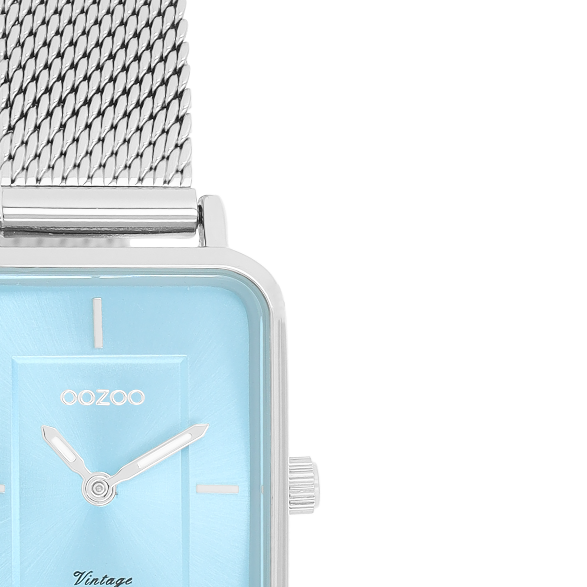 OOZOO Vintage - C20351 - Damen - Edelstahl-Mesh-Armband – Silber/Hellblau