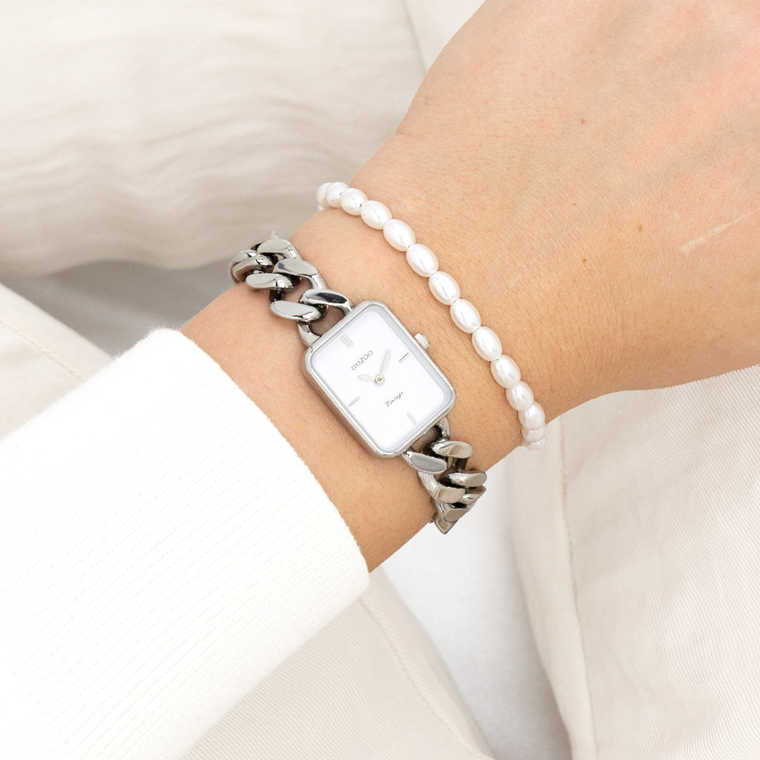 OOZOO Vintage - C20360 - Damen - Edelstahl-Glieder-Armband – Silber/Weiß