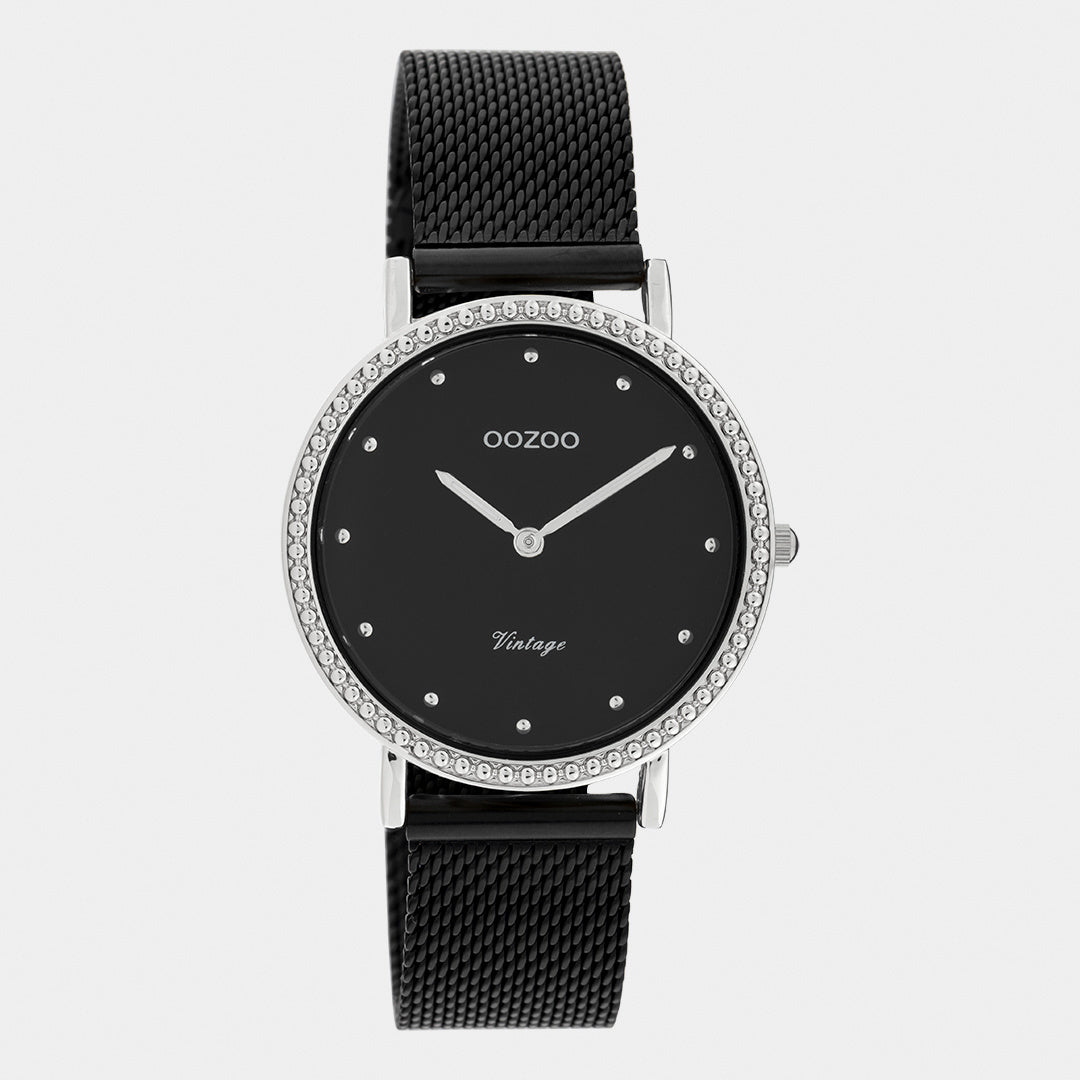 OOZOO Vintage - C20057 - Damen - Edelstahl-Mesh-Armband – Schwarz/Silber