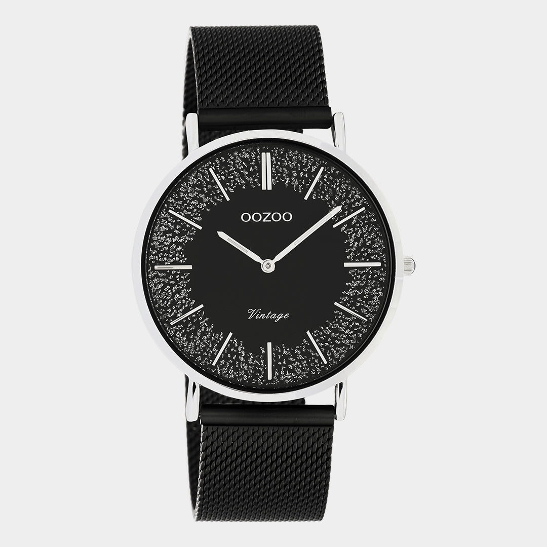 OOZOO Vintage - C20140 - Damen - Edelstahl-Mesh-Armband – Schwarz/Silber