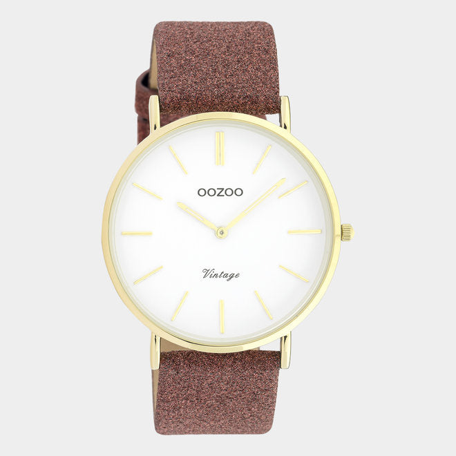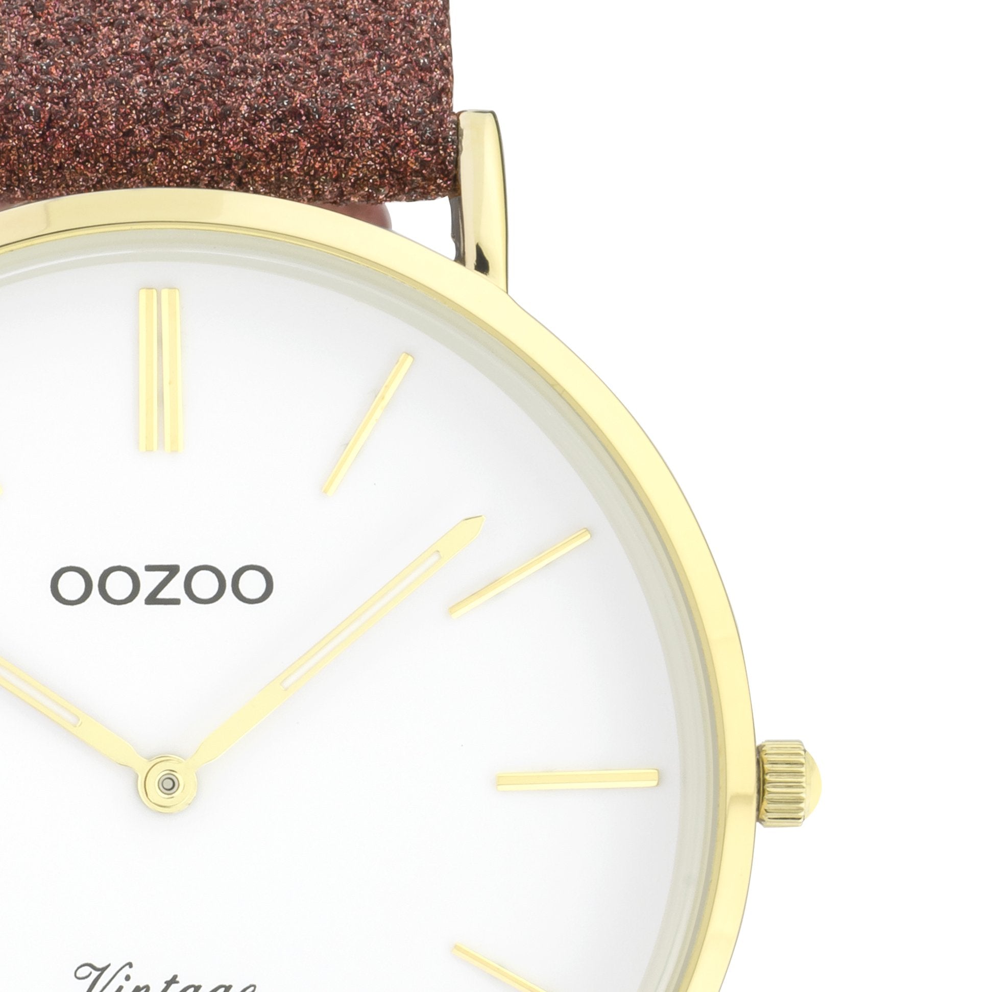 OOZOO Vintage - C20149 - Damen - Leder-Glitzer-Armband - Braun-Rot/Gold 40mm M