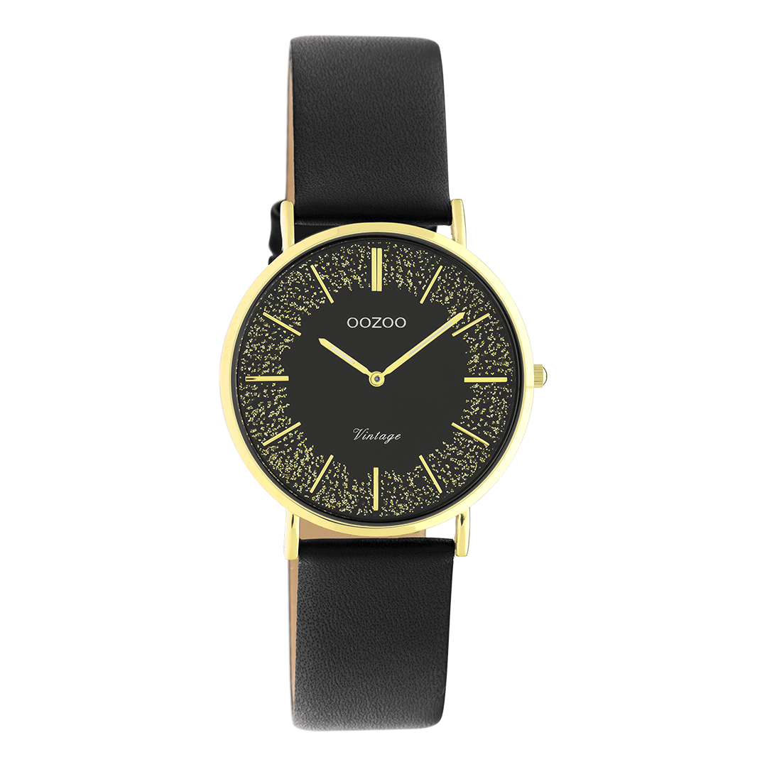 OOZOO Vintage - C20187 - Damen - Leder-Armband - Schwarz/Gold