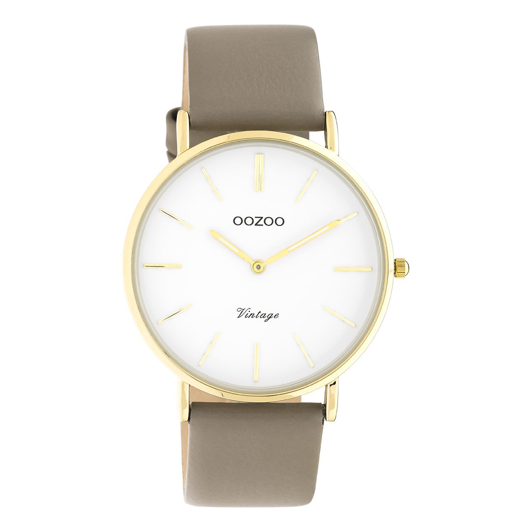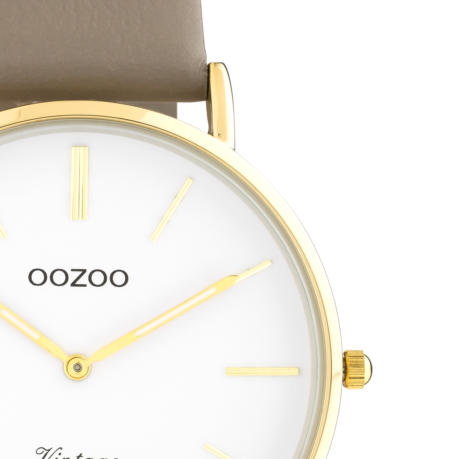 OOZOO Vintage - C20220 - Damen - Leder-Armband - Taupe/Gold 40 mm M