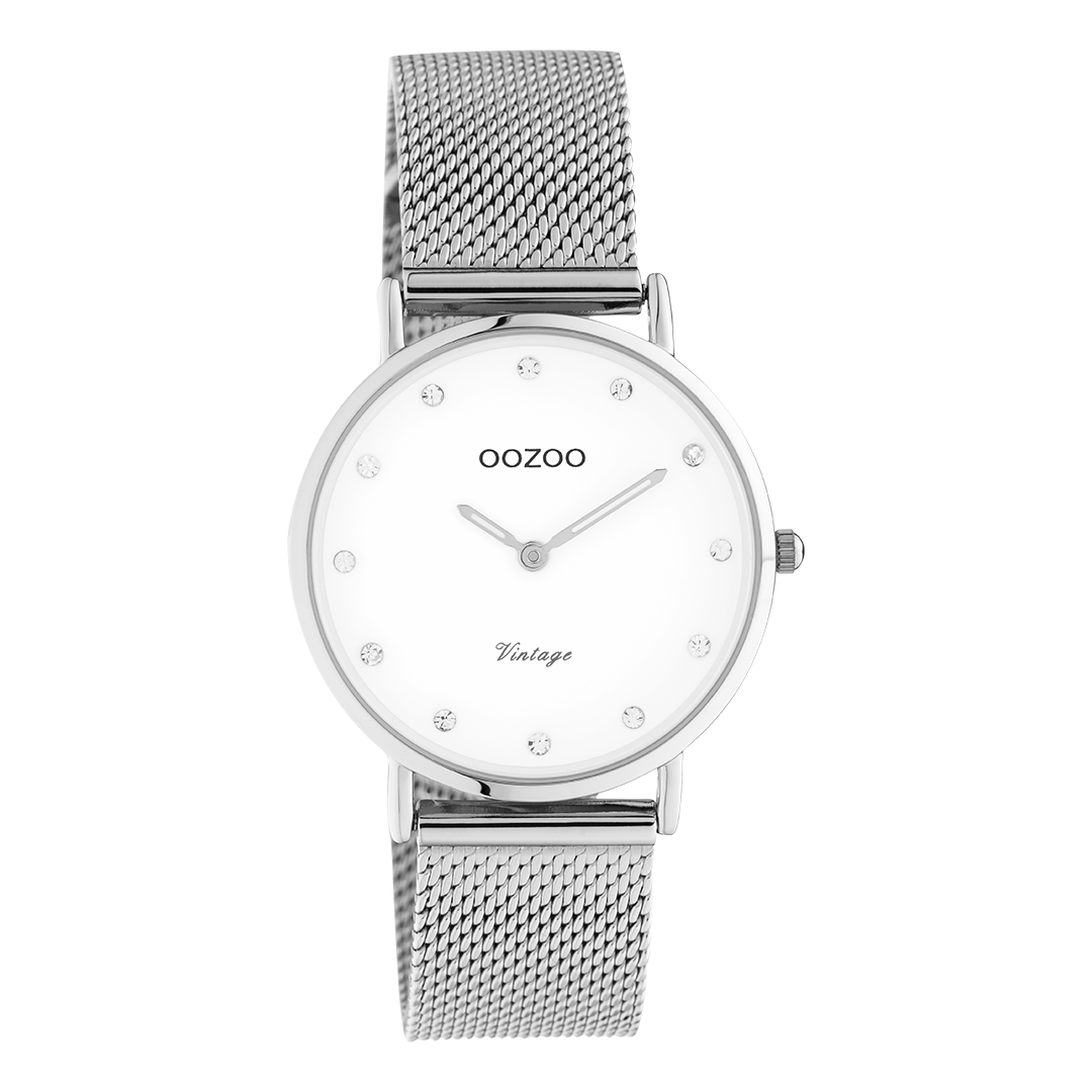 OOZOO Vintage - C20240 - Damen - Mesh-Armband - Silber/Weiß