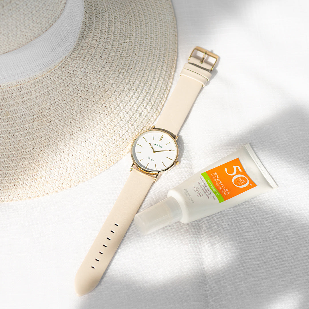 OOZOO Vintage - C20253 - Damen - Leder-Armband - Gold/Hell-Beige 40mm M