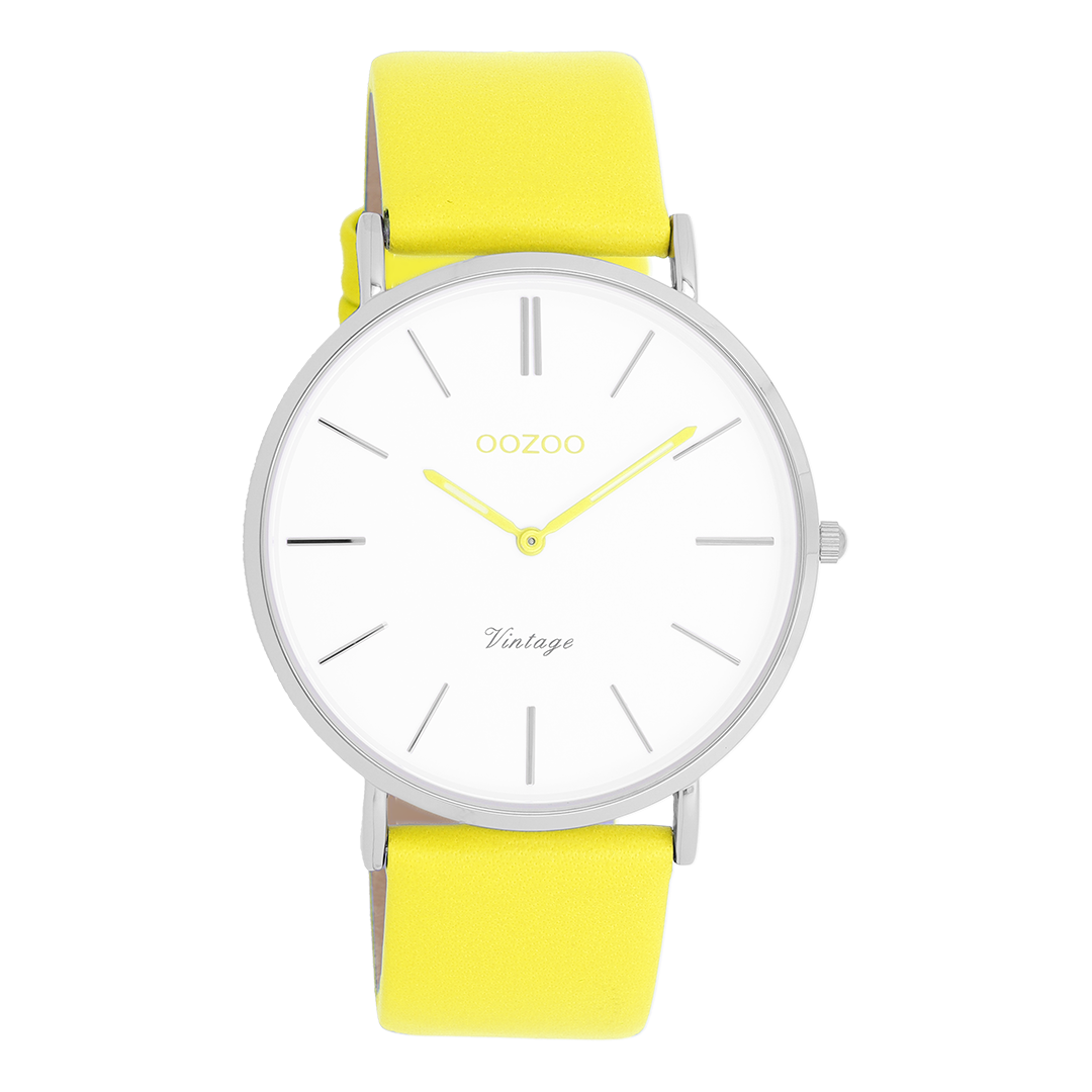 OOZOO Vintage - C20312 - Damen - Leder-Armband - Neongelb/Silber 40 mm M