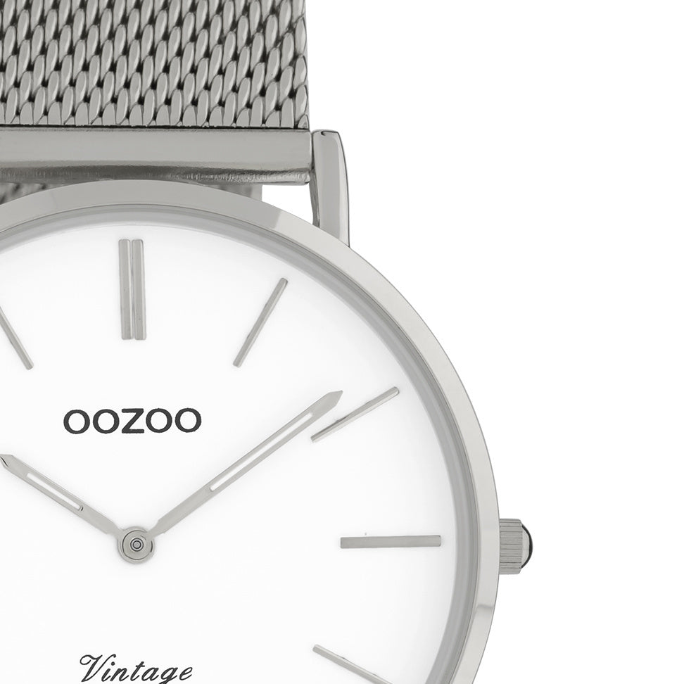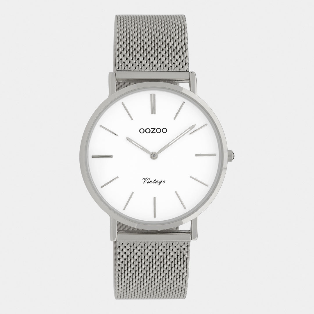 OOZOO Vintage - C9902 - Unisex - Edelstahl-Mesh-Armband - Silber/Weiß 36mm
