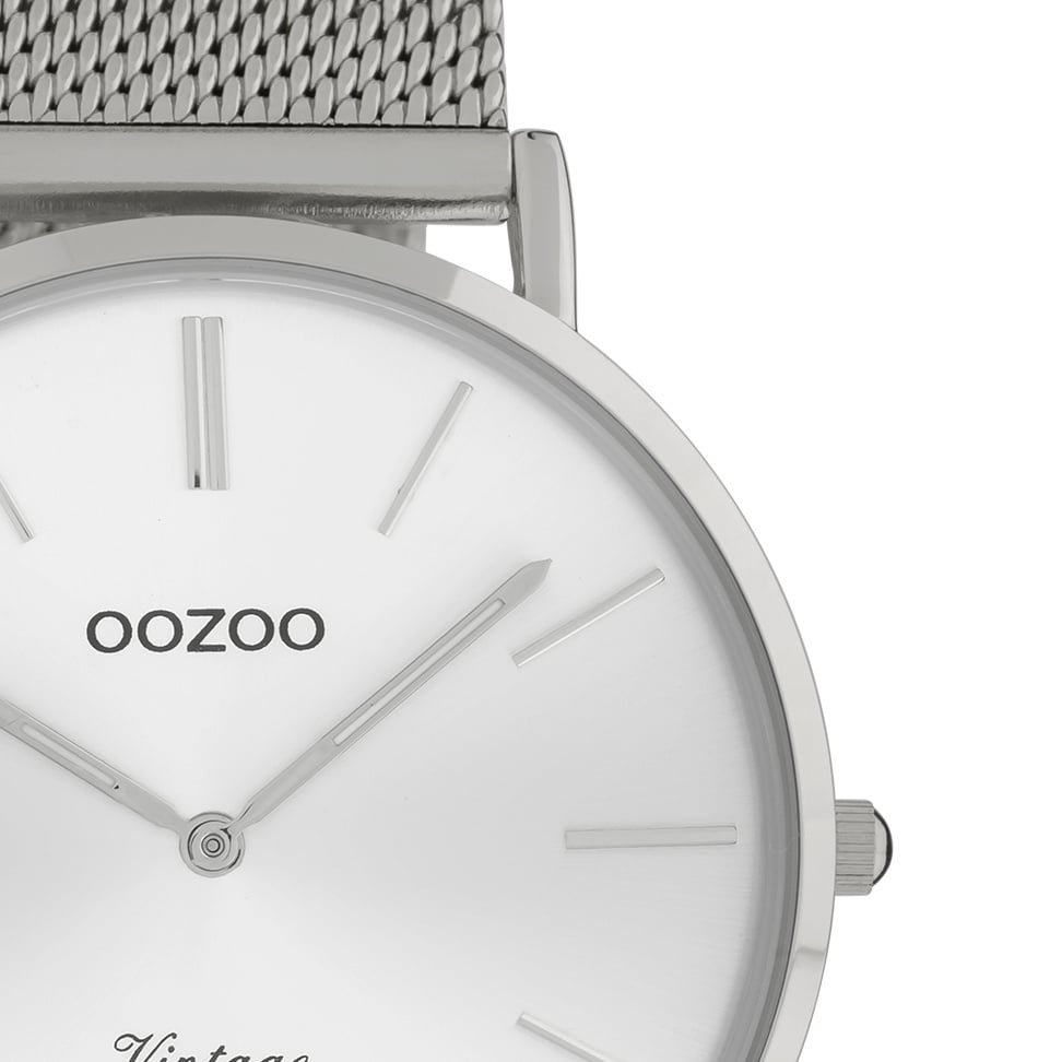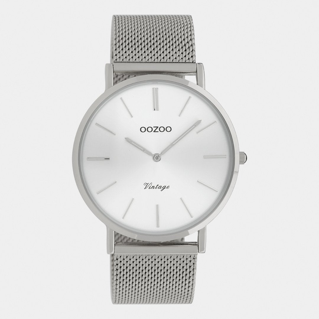 Raffinesse und Eleganz sind zwei Elemente dieser wunderschönen OOZOO Vintage-Serie. Dieses klassische runde Design der C9905 passt für jeden. Diese Unisex-Uhr ist mit ihrem silbernen Metallgehäuse ø40mm und dem silbernen Zifferblatt angenehm zu tragen. Das silberne Mesh-Armband mit Schiebeverschluss macht diese Uhr zu einem Klassiker aller Zeiten, den Sie zu jedem Anlass tragen können. Das Zifferblatt hat silber gestreifte Ziffern und passende Zeiger. Dieses Modell ist mit einem japanischen Markenuhrwerk ausgestattet. Außerdem ist die Uhr spritzwassergeschützt, nickelfrei und hat einen Gehäuseboden aus Edelstahl.