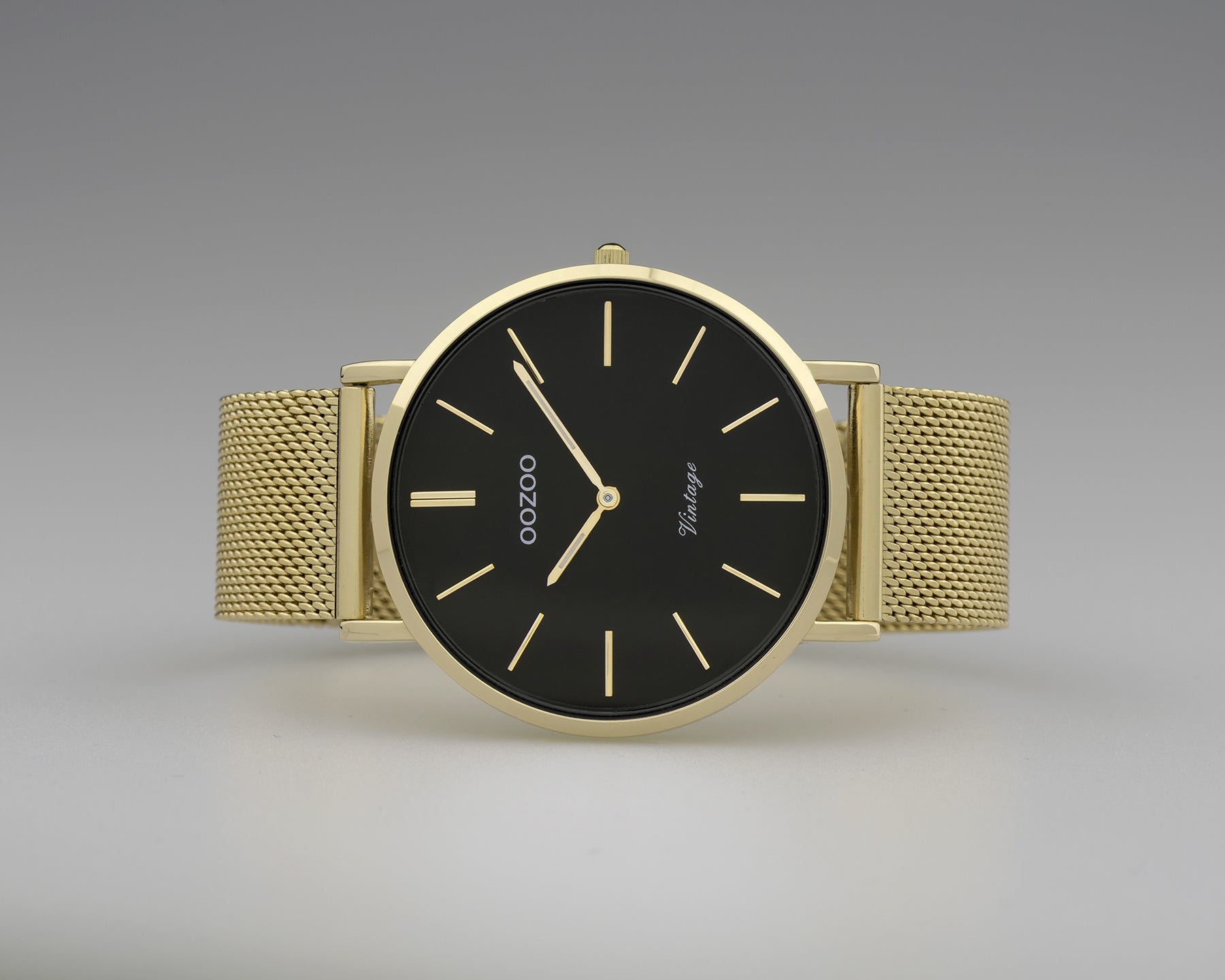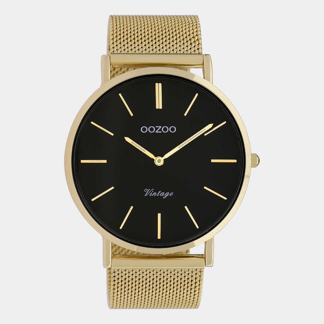 OOZOO Vintage - C9912 - Unisex - Edelstahl-Mesh-Armband - Gold/Schwarz 44mm