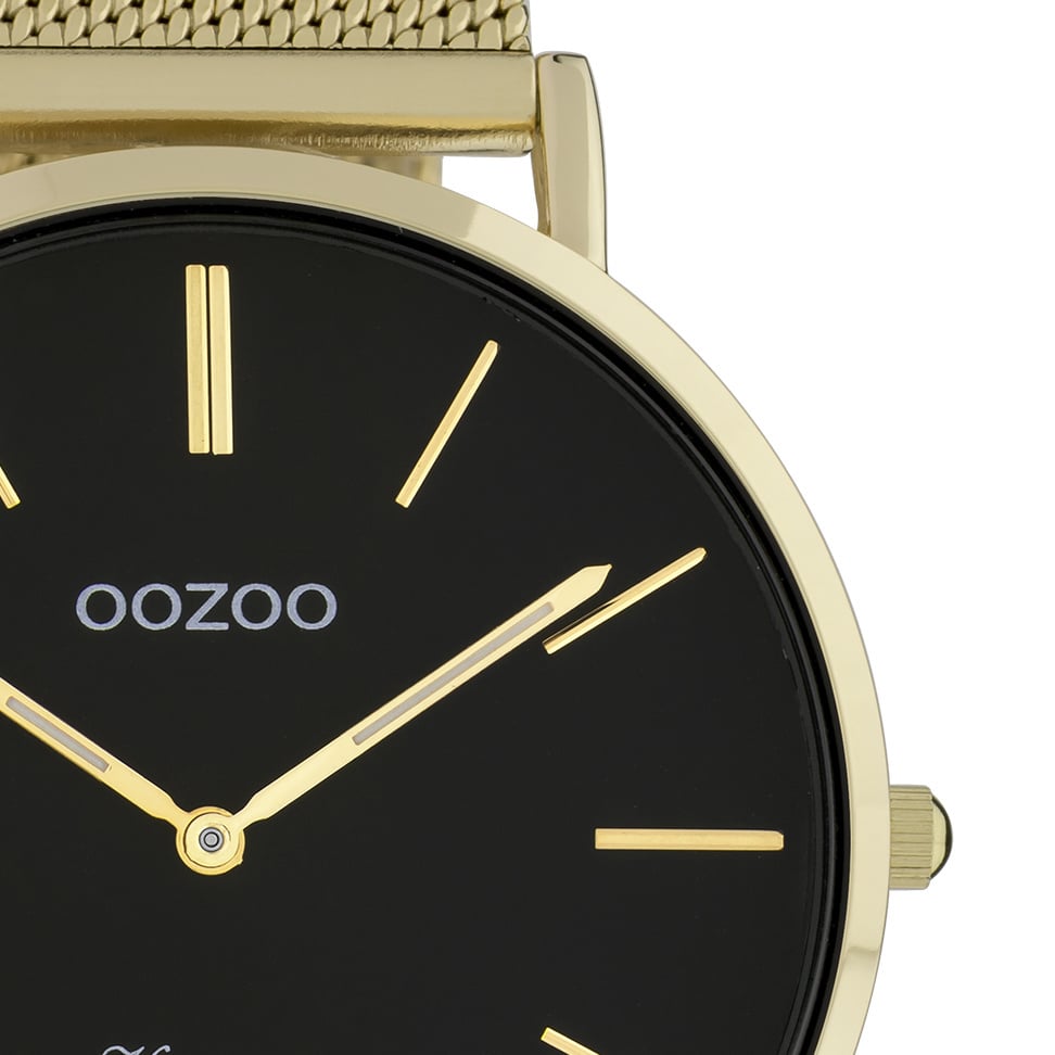 Raffinesse und Eleganz sind zwei Elemente dieser wunderschönen OOZOO Vintage-Serie. Dieses klassische runde Design der C9912 passt für jeden. Diese Unisex-Uhr ist mit ihrem goldenen Metallgehäuse ø44mm und dem schwarzen Zifferblatt angenehm zu tragen. Das goldene Mesh-Armband mit Schiebeverschluss macht diese Uhr zu einem Klassiker aller Zeiten, den Sie zu jedem Anlass tragen können. Das Zifferblatt hat golden gestreifte Ziffern und passende Zeiger. Dieses Modell ist mit einem japanischen Markenuhrwerk ausgestattet. Außerdem ist die Uhr spritzwassergeschützt, nickelfrei und hat einen Gehäuseboden aus Edelstahl.
