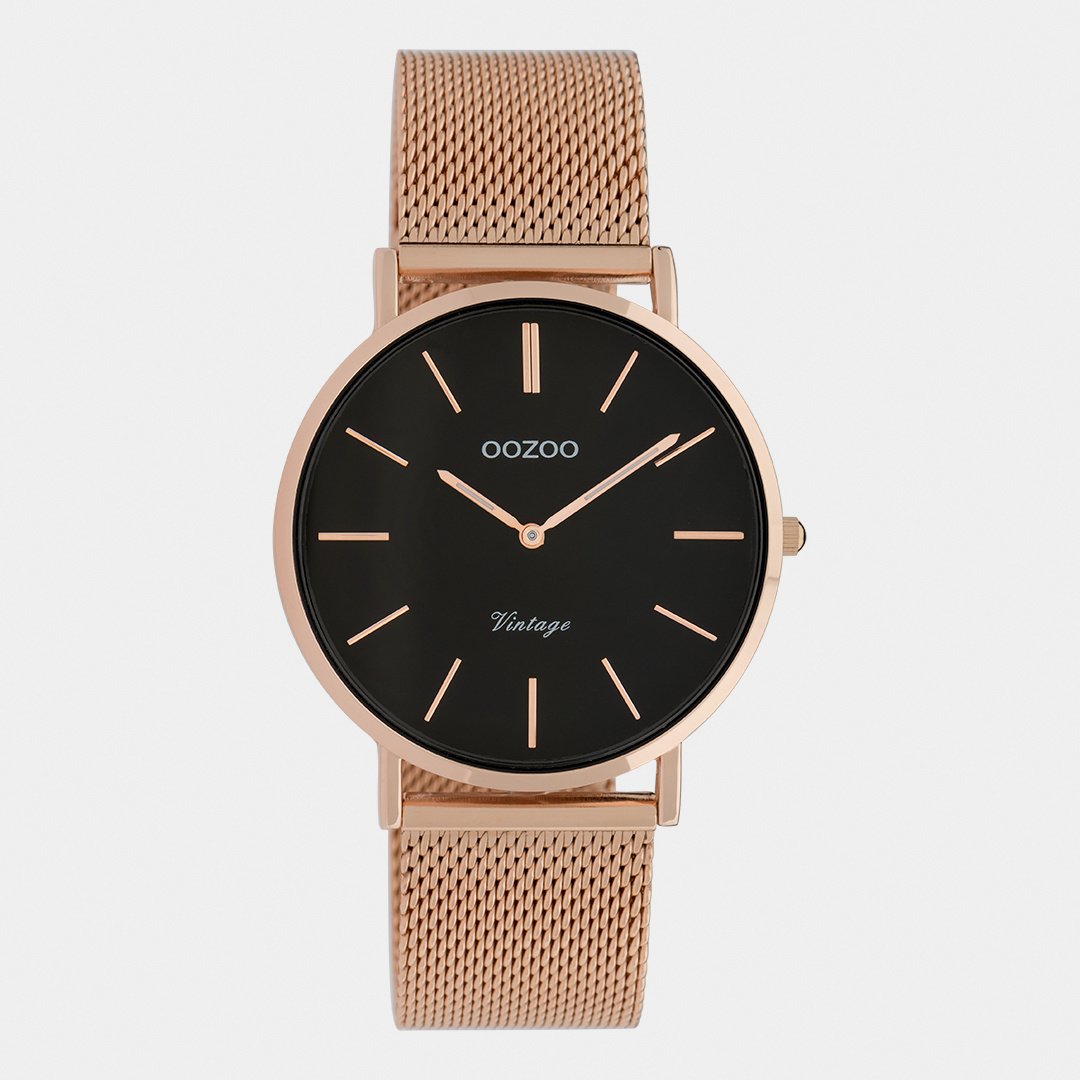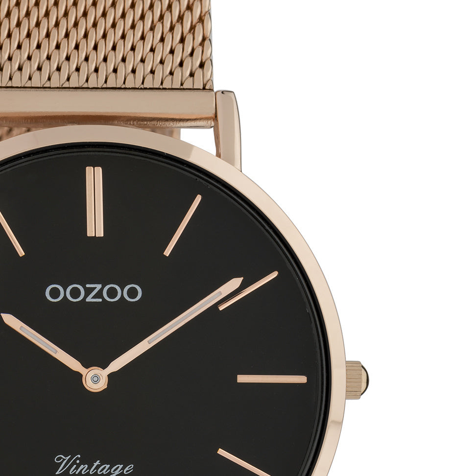 OOZOO Vintage - C9926 - Unisex - Edelstahl-Mesh-Armband - Roségold/Schwarz