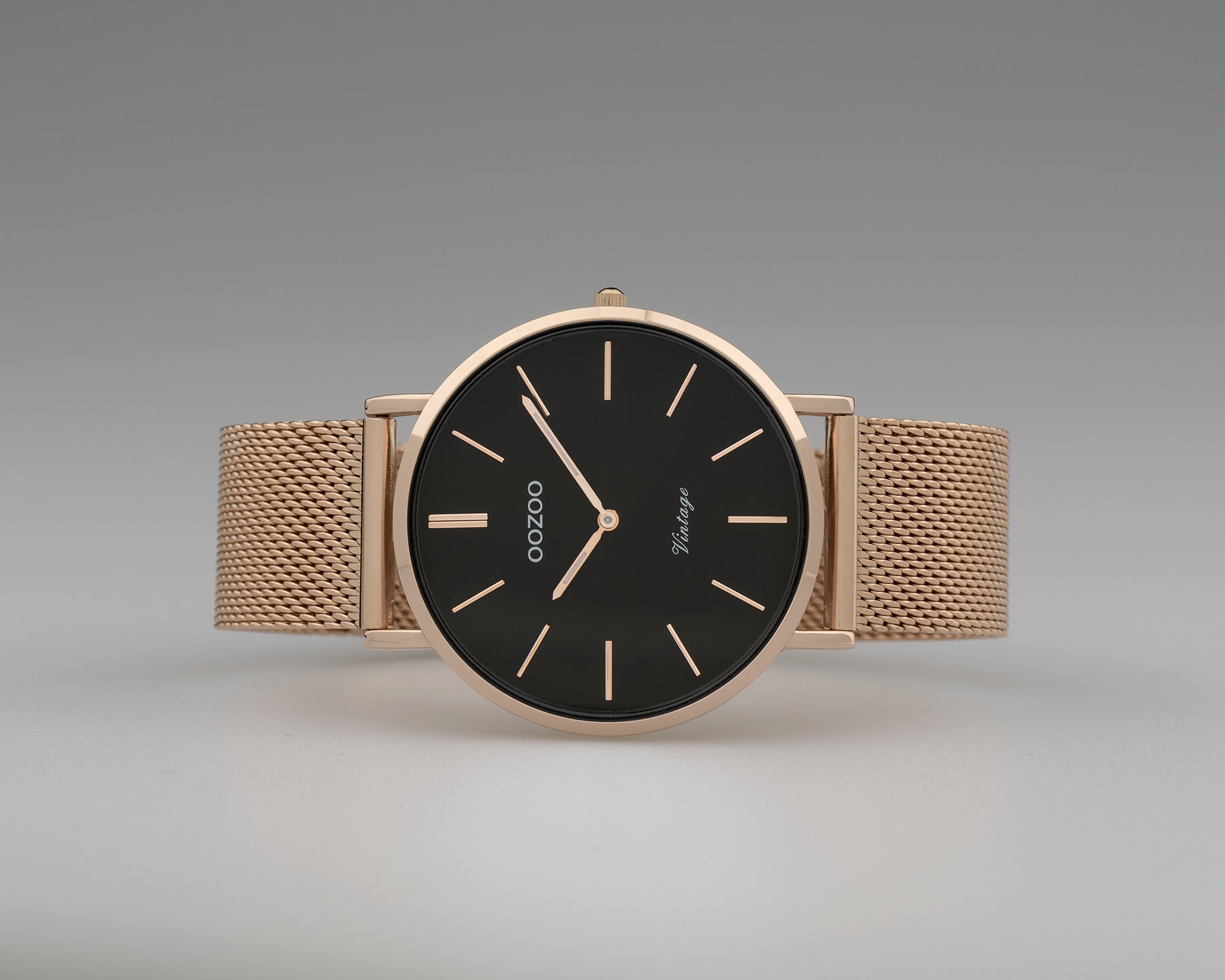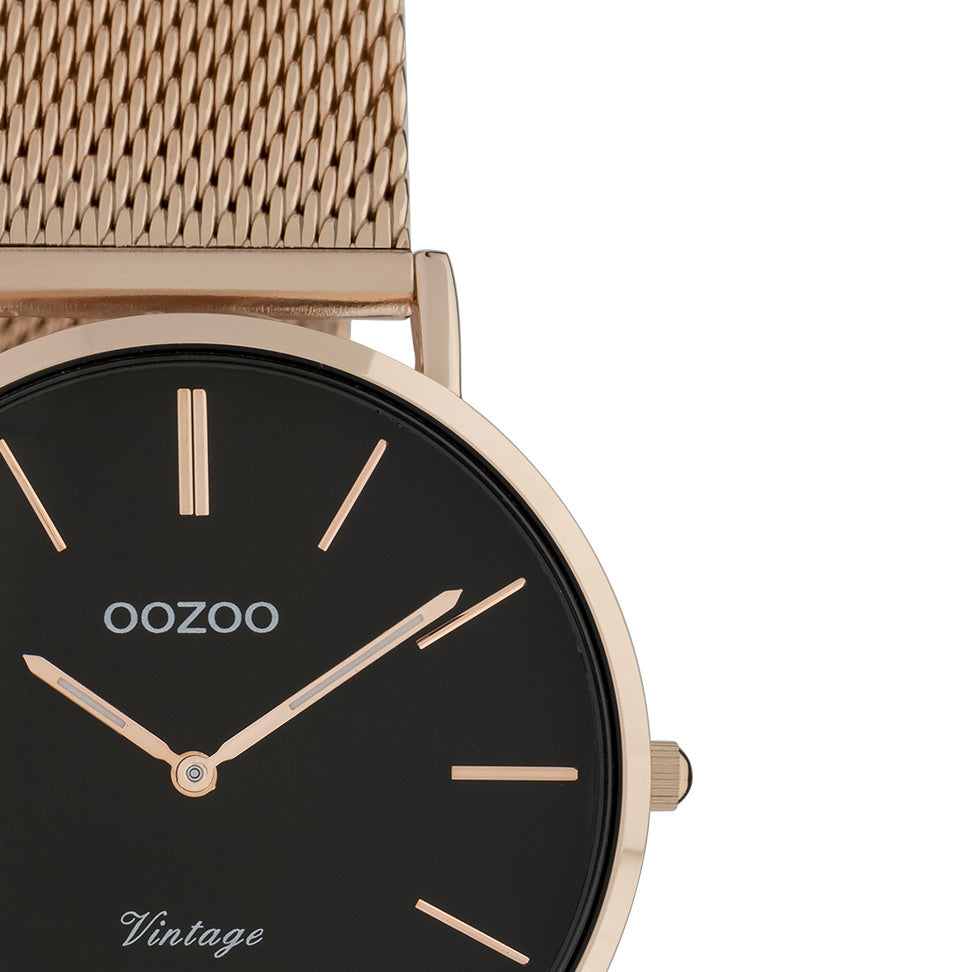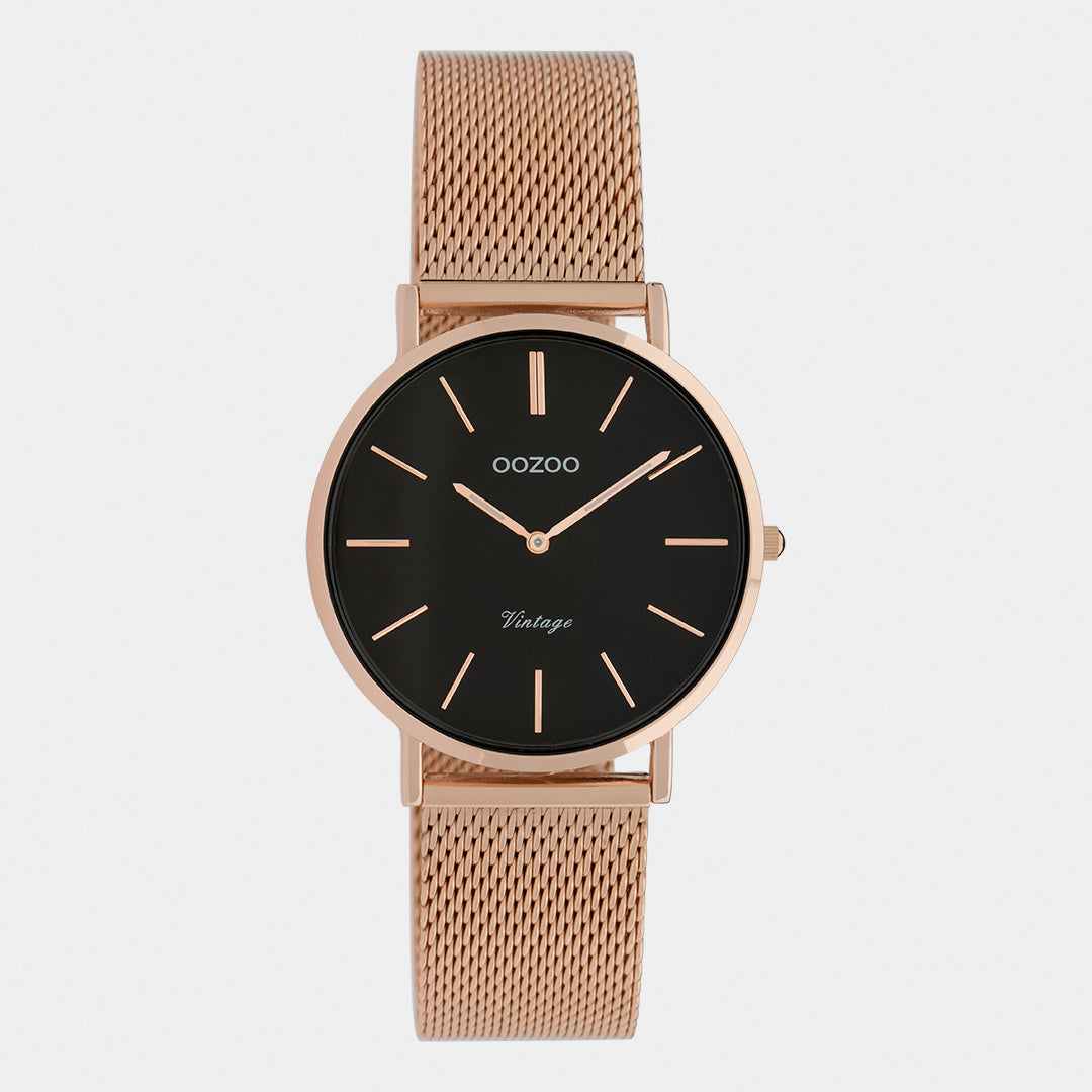 OOZOO Vintage - C9927 - Unisex - Edelstahl-Mesh-Armband - Roségold/Schwarz