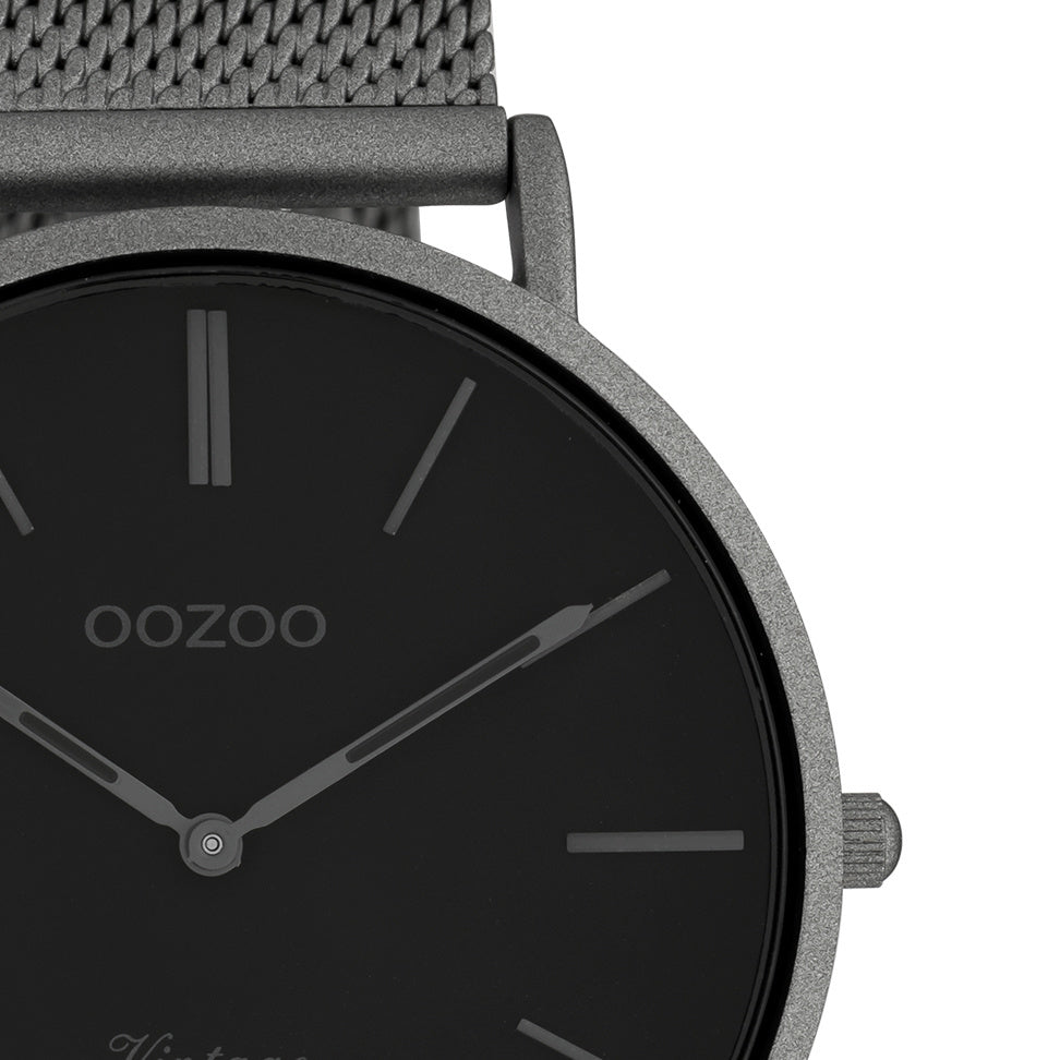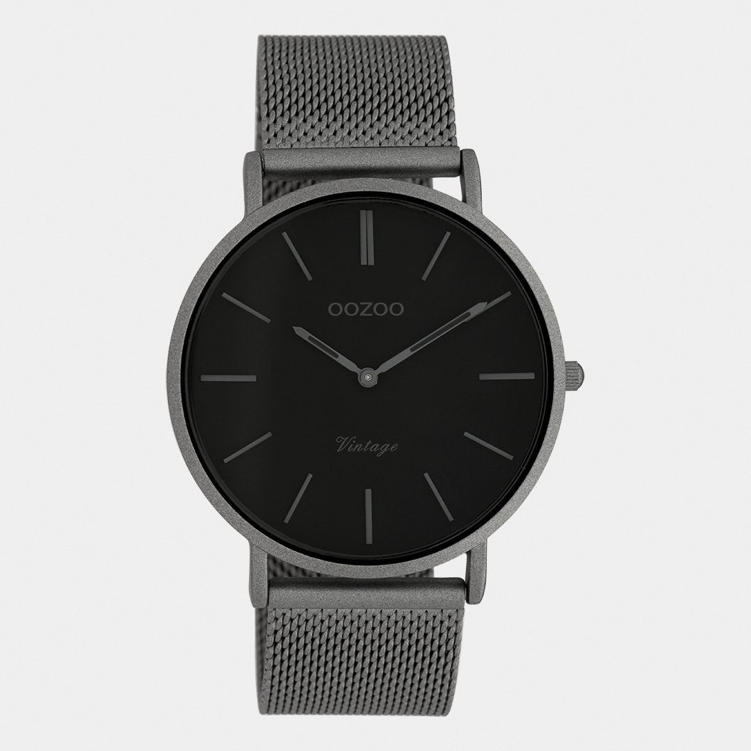 OOZOO Vintage - C9929 - Unisex - Edelstahl-Mesh-Armband - Titan/Schwarz 40mm