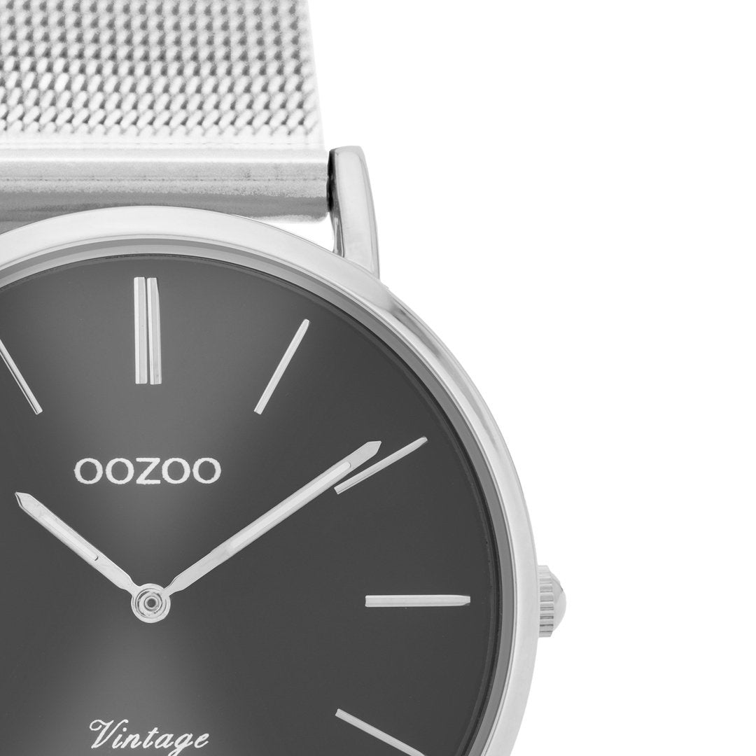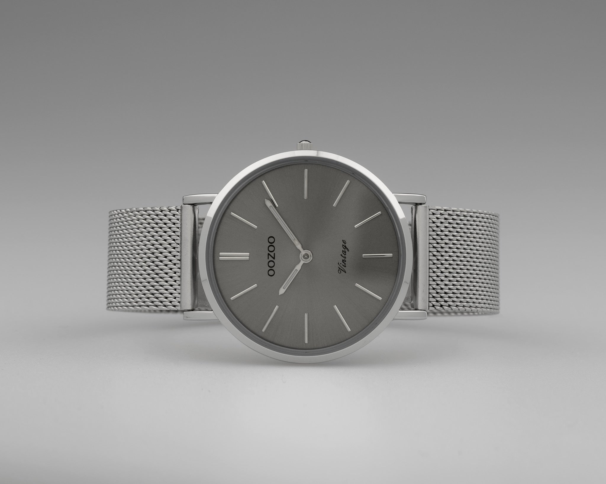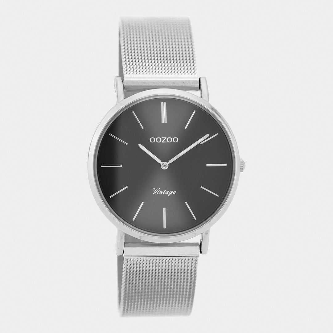 Raffinesse und Eleganz sind zwei Elemente dieser wunderschönen OOZOO Vintage-Serie. Dieses klassische runde Design der C9939 passt für jeden. Diese Unisex-Uhr ist mit ihrem silbernen Metallgehäuse ø32mm und dem titanfarbenen Zifferblatt angenehm zu tragen. Das silberene Mesh-Armband mit Schiebeverschluss macht diese Uhr zu einem Klassiker aller Zeiten, den Sie zu jedem Anlass tragen können. Das Zifferblatt hat silberfarben gestreifte Ziffern und passende Zeiger. Dieses Modell ist mit einem japanischen Markenuhrwerk ausgestattet. Außerdem ist die Uhr spritzwassergeschützt, nickelfrei und hat einen Gehäuseboden aus Edelstahl.