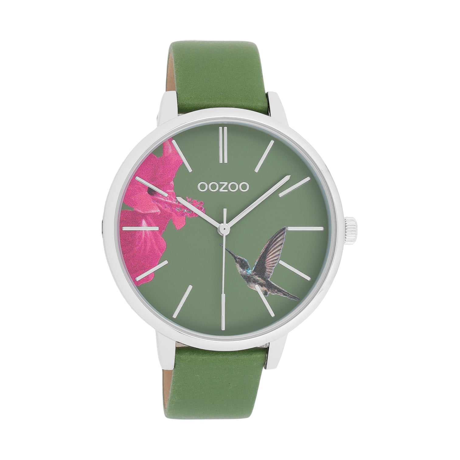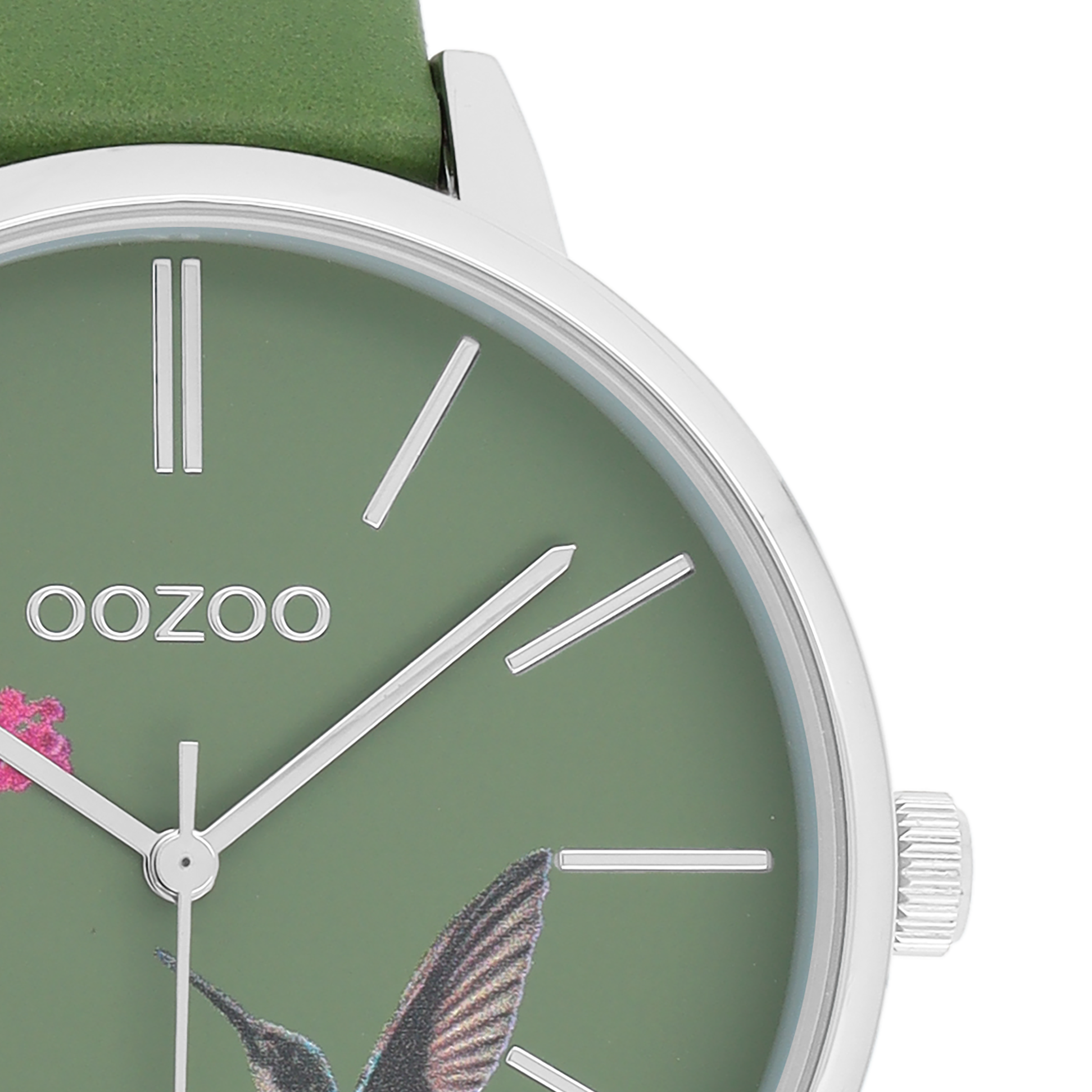 OOZOO Timepieces - C11065 - Damen - Leder-Armband - Grün/Silber 42 mm M