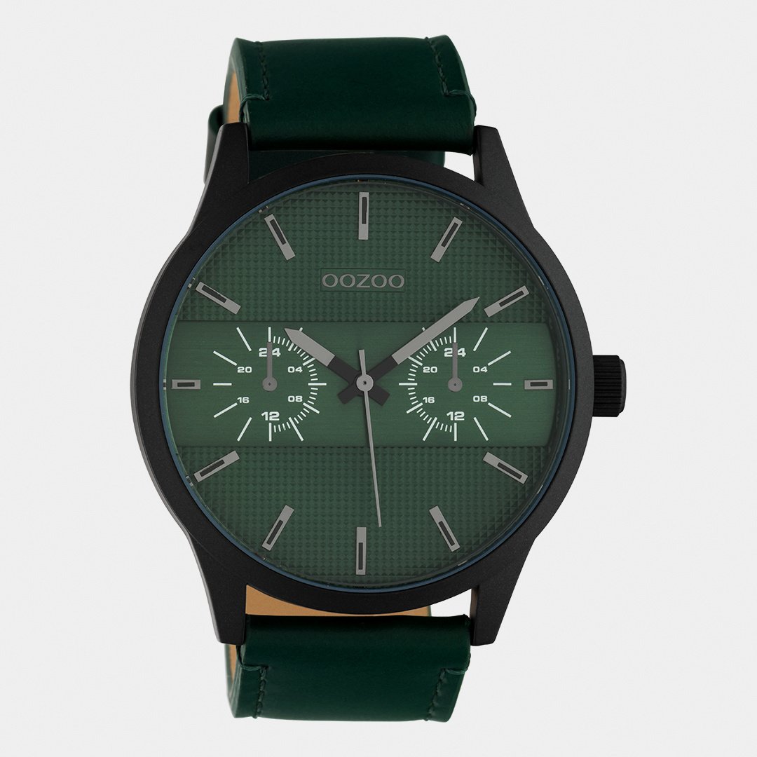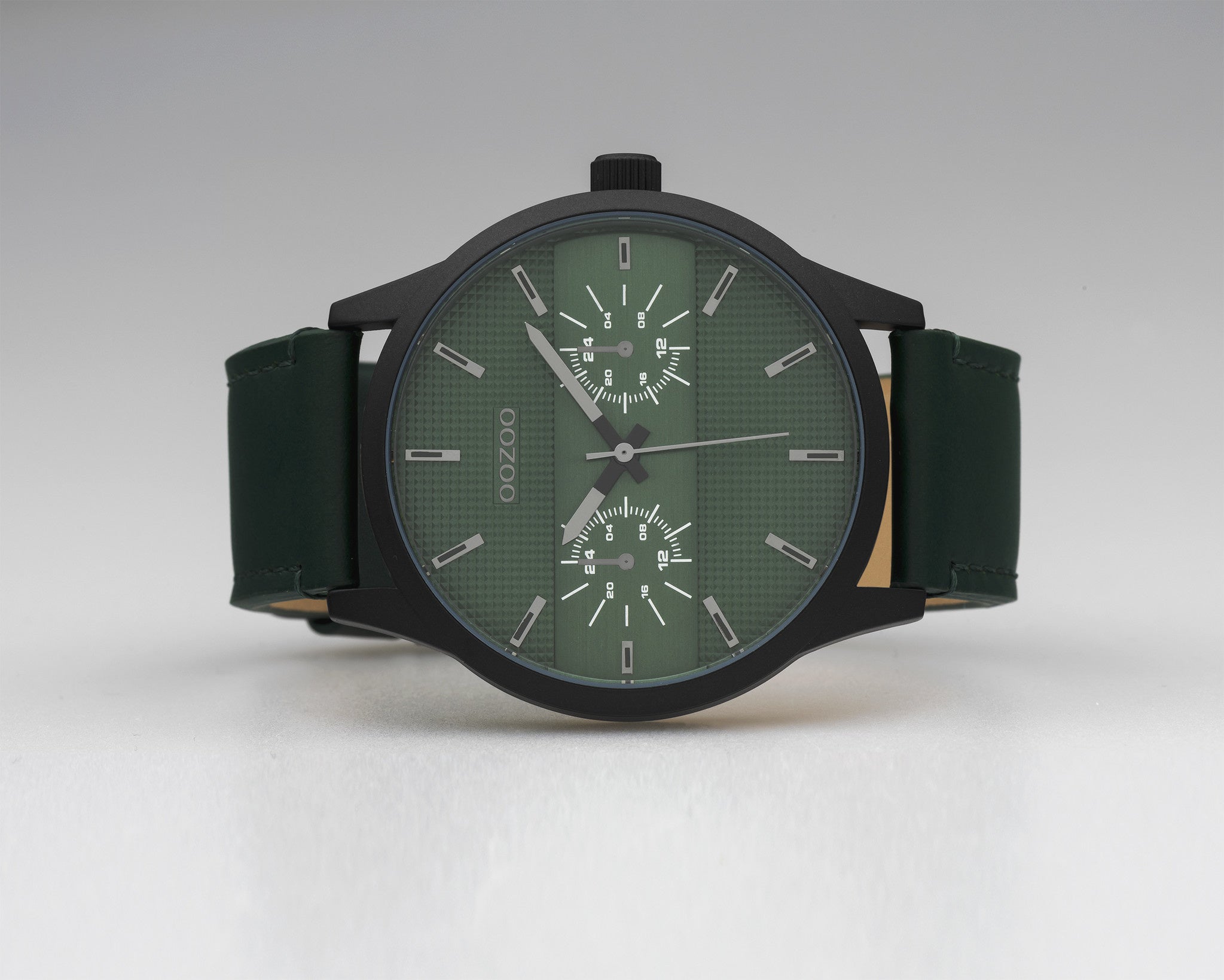 OOZOO Timepieces - C10537 - Herren - Leder-Armband - Grün/Schwarz