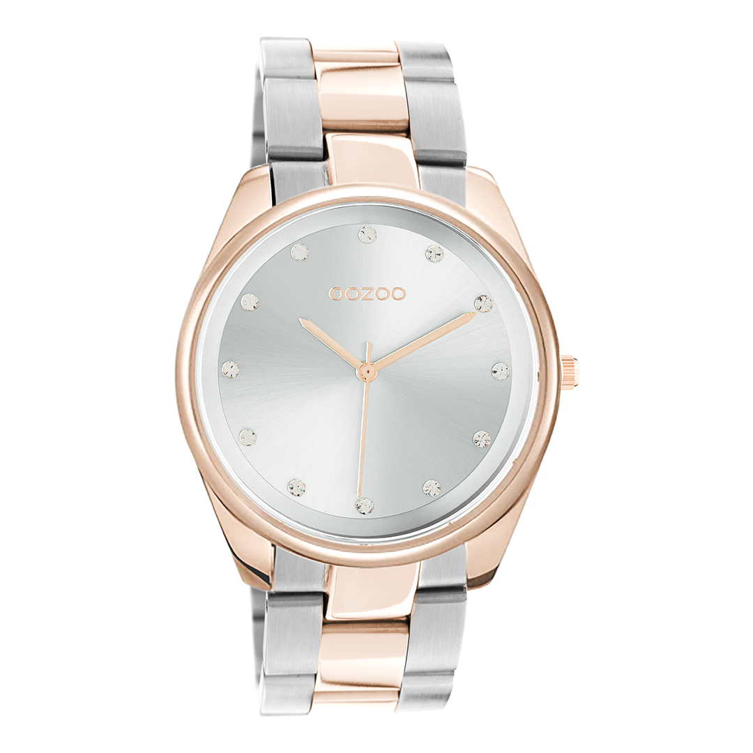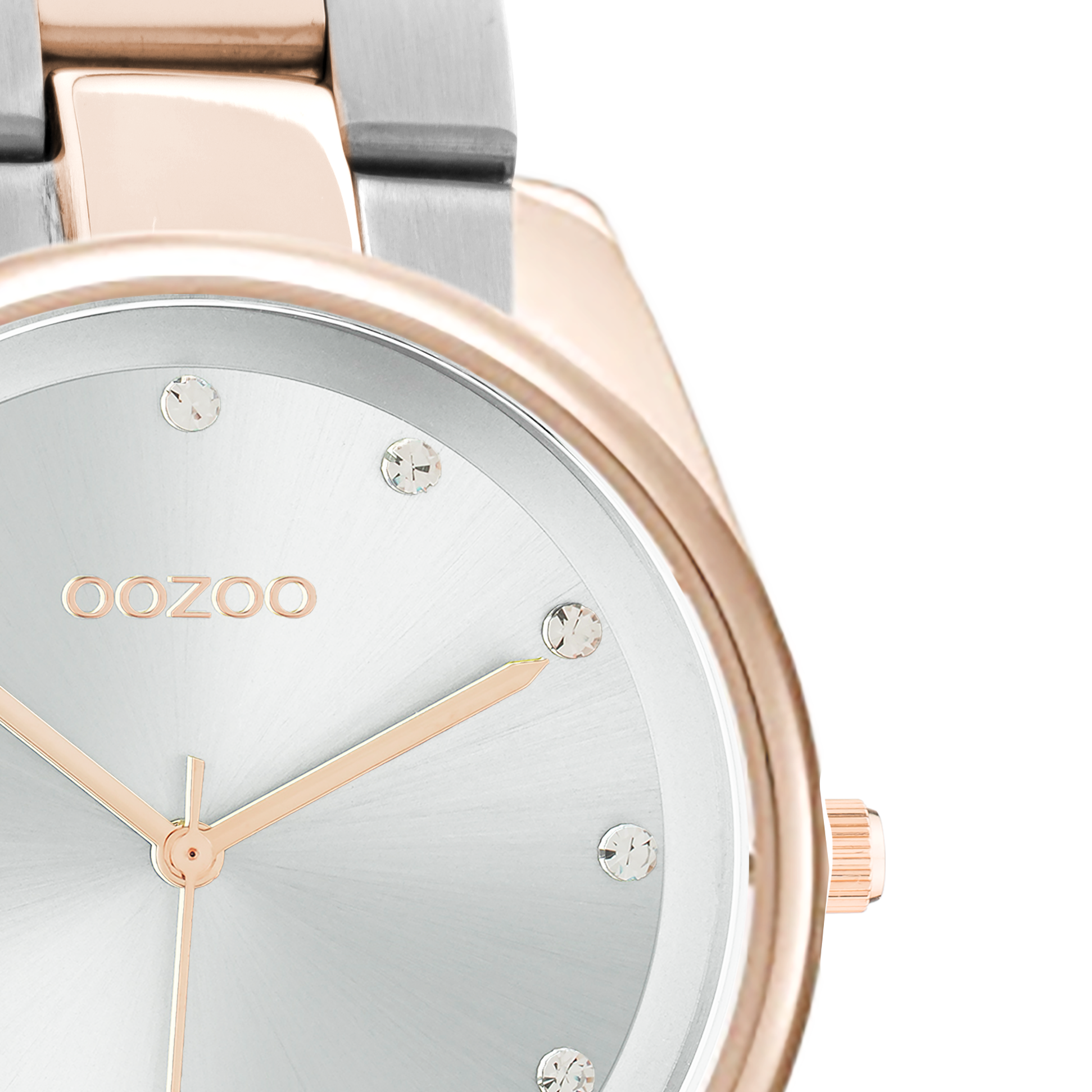 OOZOO Timepieces - C10964 - Damen - Edelstahl-Glieder-Armband - Silber/Roségold/Weiß