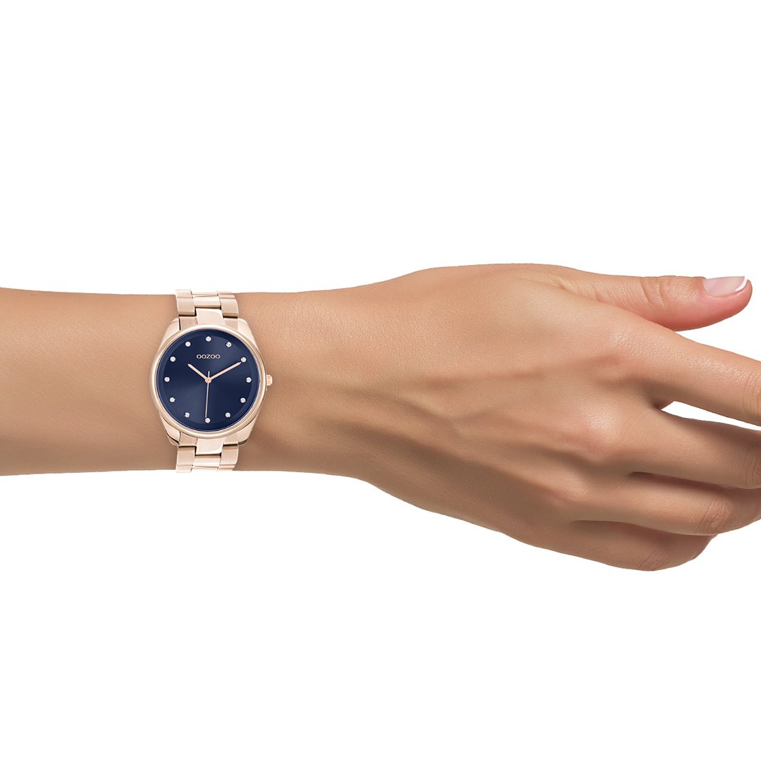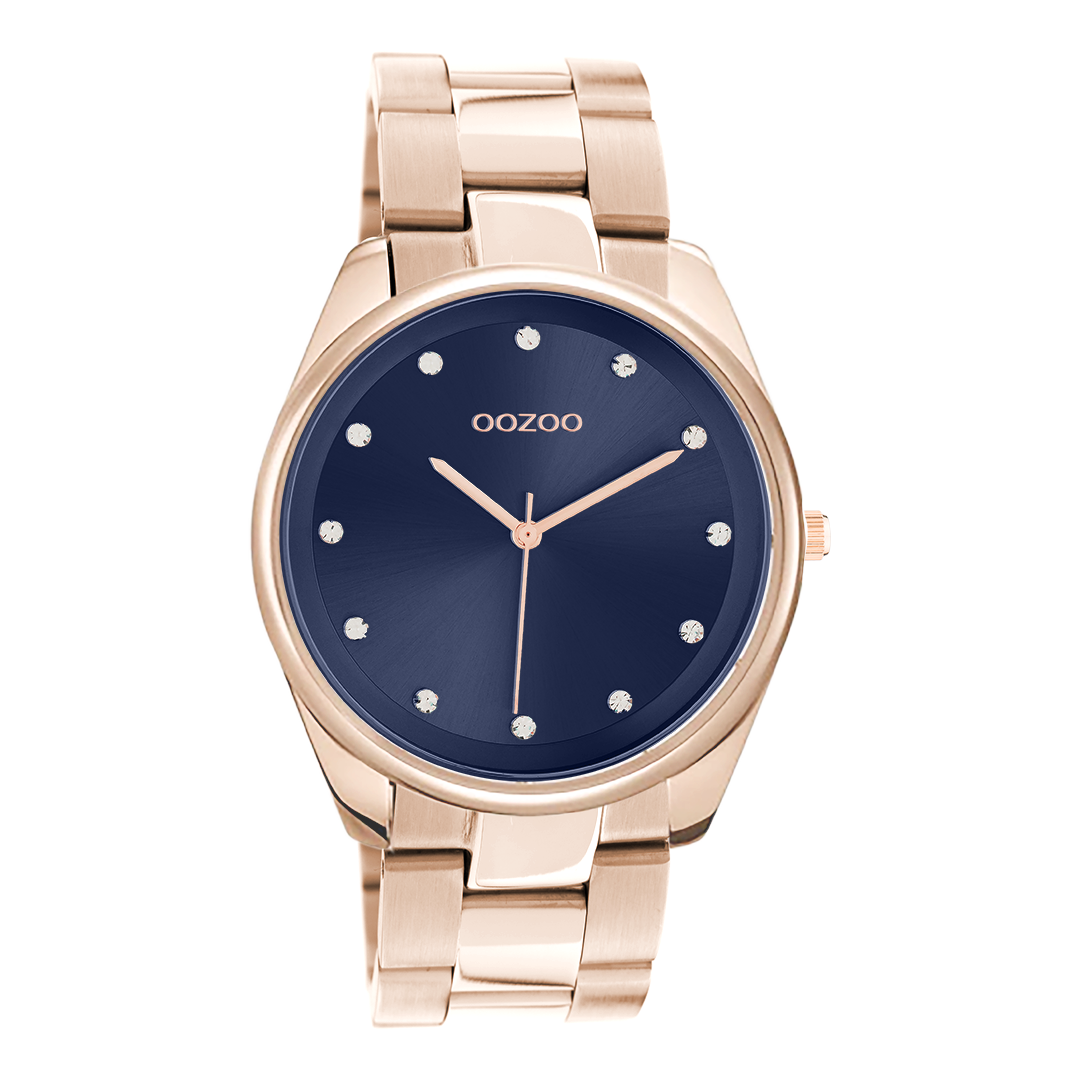 OOZOO Timepieces - C10967 - Damen - Edelstahl-Glieder-Armband - Roségold/Blau