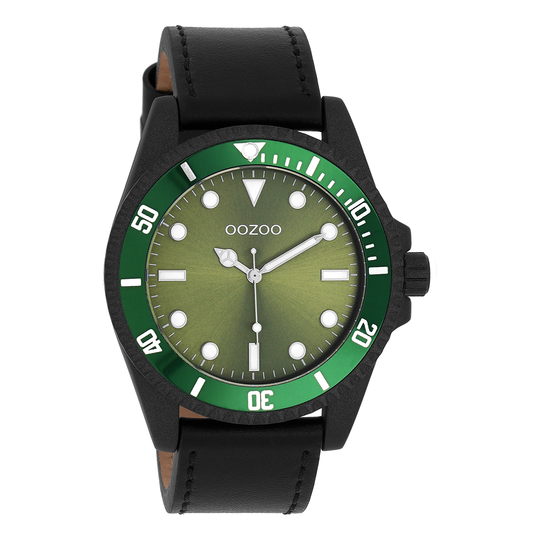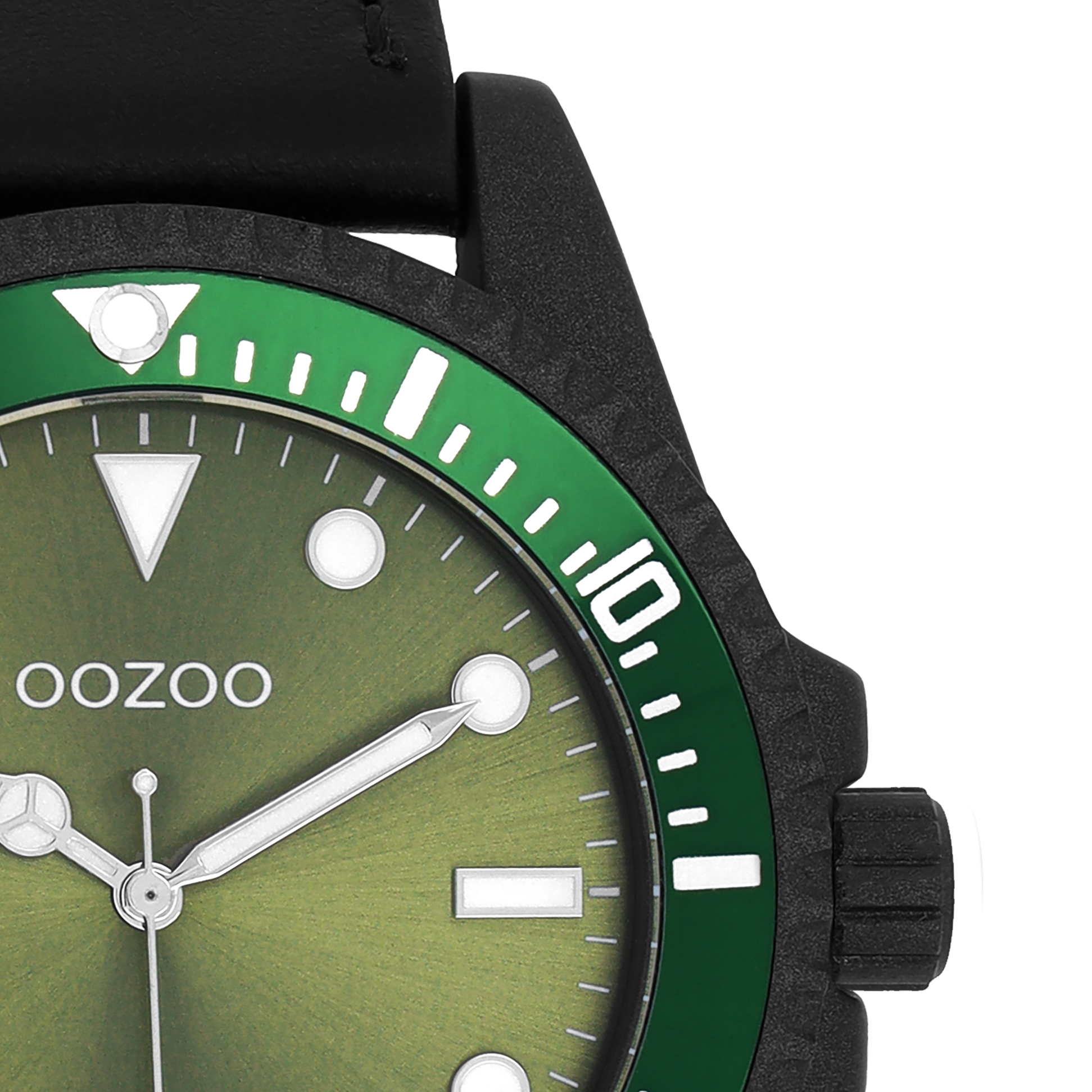 OOZOO Timepieces - C11117 - Herren - Leder-Armband - Schwarz/Grün